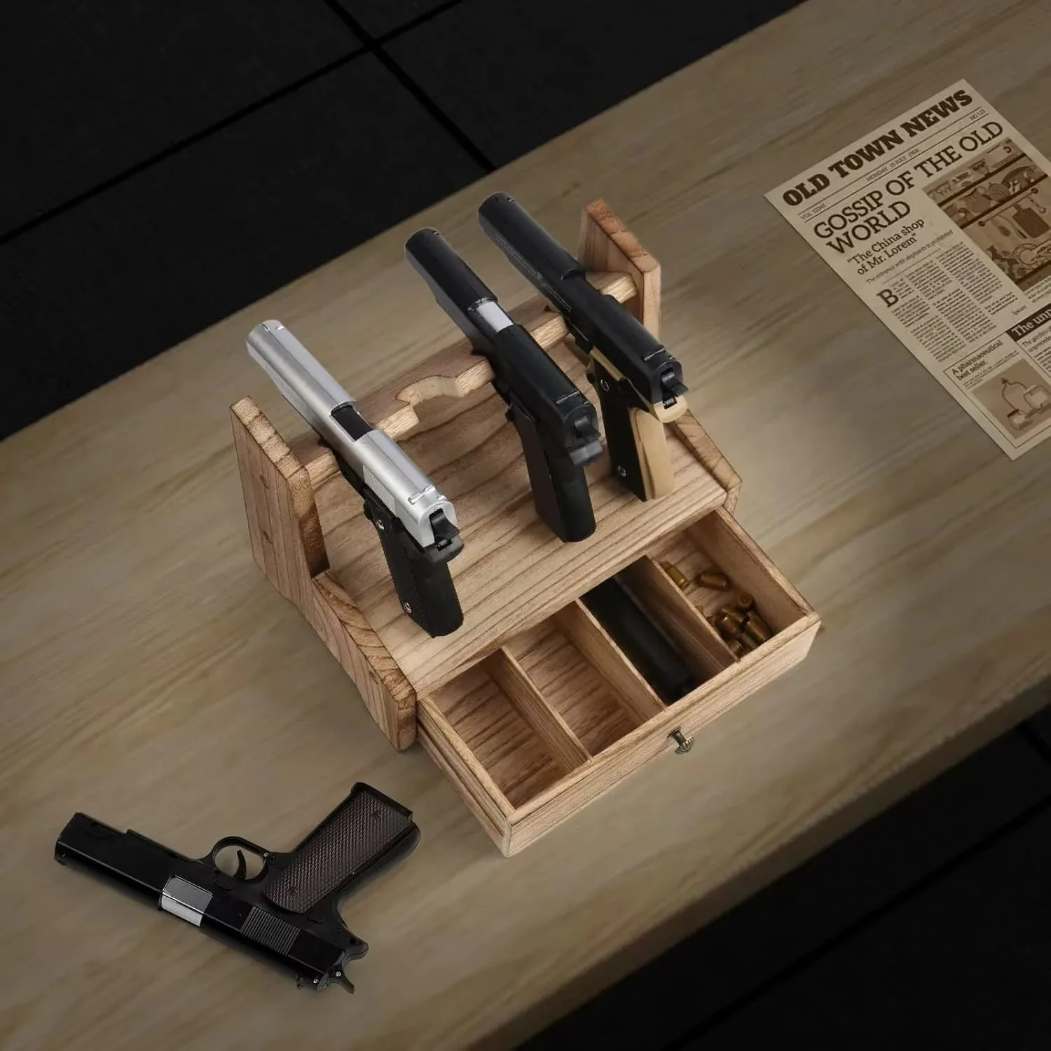 1. 【Almacenamiento ordenado】 El estante para pistolas tiene 6/4 ranuras en forma de U para almacenamiento y cajones adicionales que se utilizan para colocar equipos y accesorios tácticos de pistola. No solo puede ayudarlo a encontrar las cosas rápidamente, sino que también mantiene el ambiente limpio y cómodo..