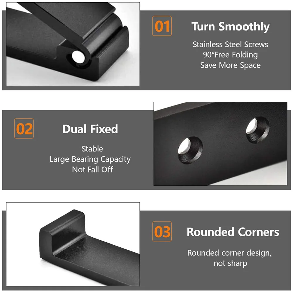 Este soporte para armas de montaje en pared no solo es liviano sino también más estable y de mayor resistencia, el punto más importante es plegable.El gancho para pistola con una esquina suave y elegante es conveniente para que todos lo abran cuando están en uso o se pliegan cuando no estén en uso.Doblar suavemente 90° El diseño puede ahorrar más espacio y evitar daños involuntarios y hacer que su sala de armas esté más organizada.