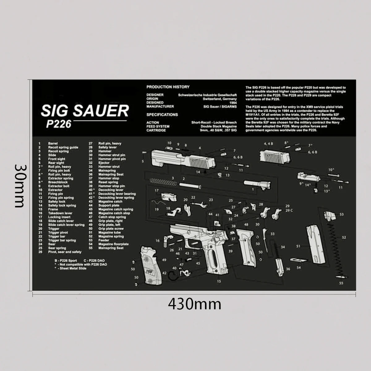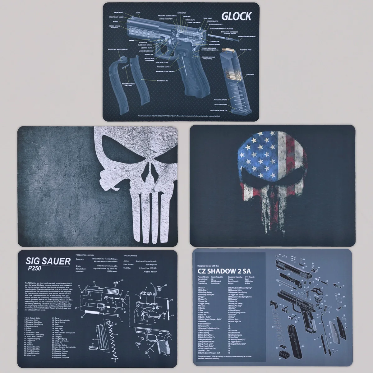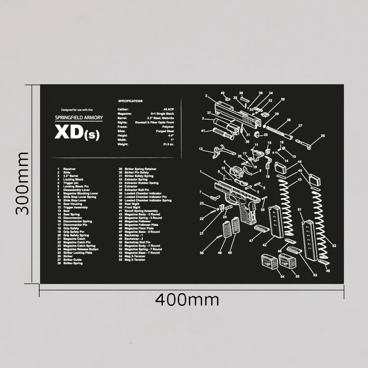 Característica: 1. Proteja su arma y su área de trabajo: la suave superficie de fibra termoplástica garantiza que su arma no se raye, mientras que la parte posterior de neopreno de caucho de 3 mm de espesor protegerá su superficie de trabajo y evitará que la alfombra se resbale 2. Pistola de limpieza de alfombras de calidad: esta pistola de limpieza Glock Moquette de Tekmat está fabricada según un estándar exigente que comienza con cero resistencia al agua y al aceite de impresión por sublimación cuyas fibras durarán toda la vida. 3.Fácil de usar: esta alfombra de limpieza para pistola viene con una descripción general de la historia de la pistola, así como un diagrama de piezas simple de seguir que representa su pistola y rueda para un fácil almacenamiento.
