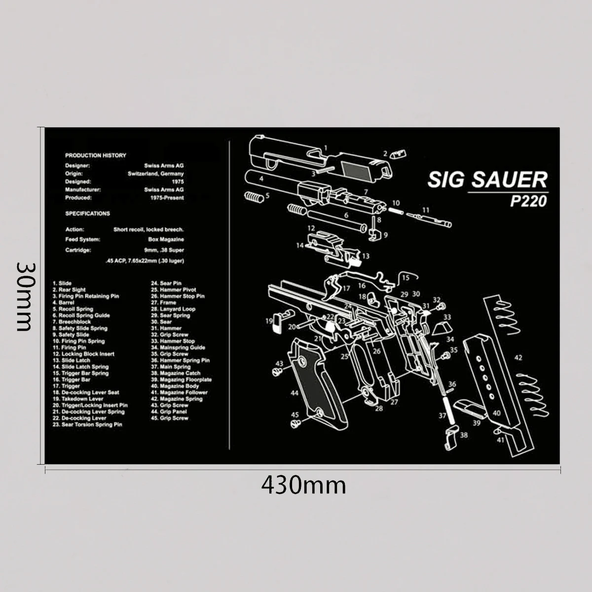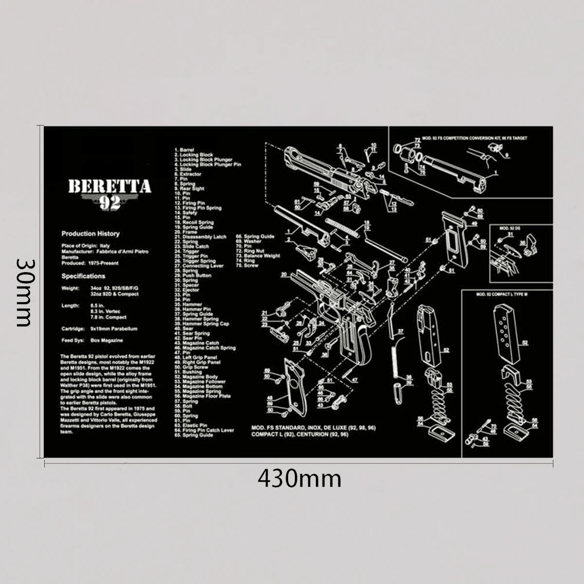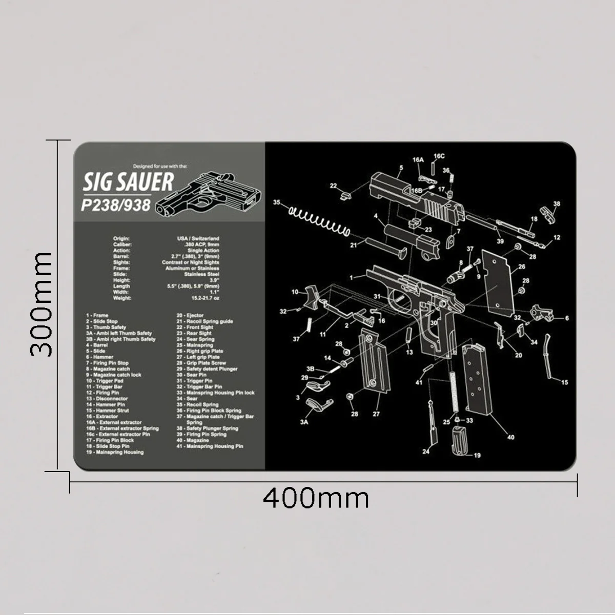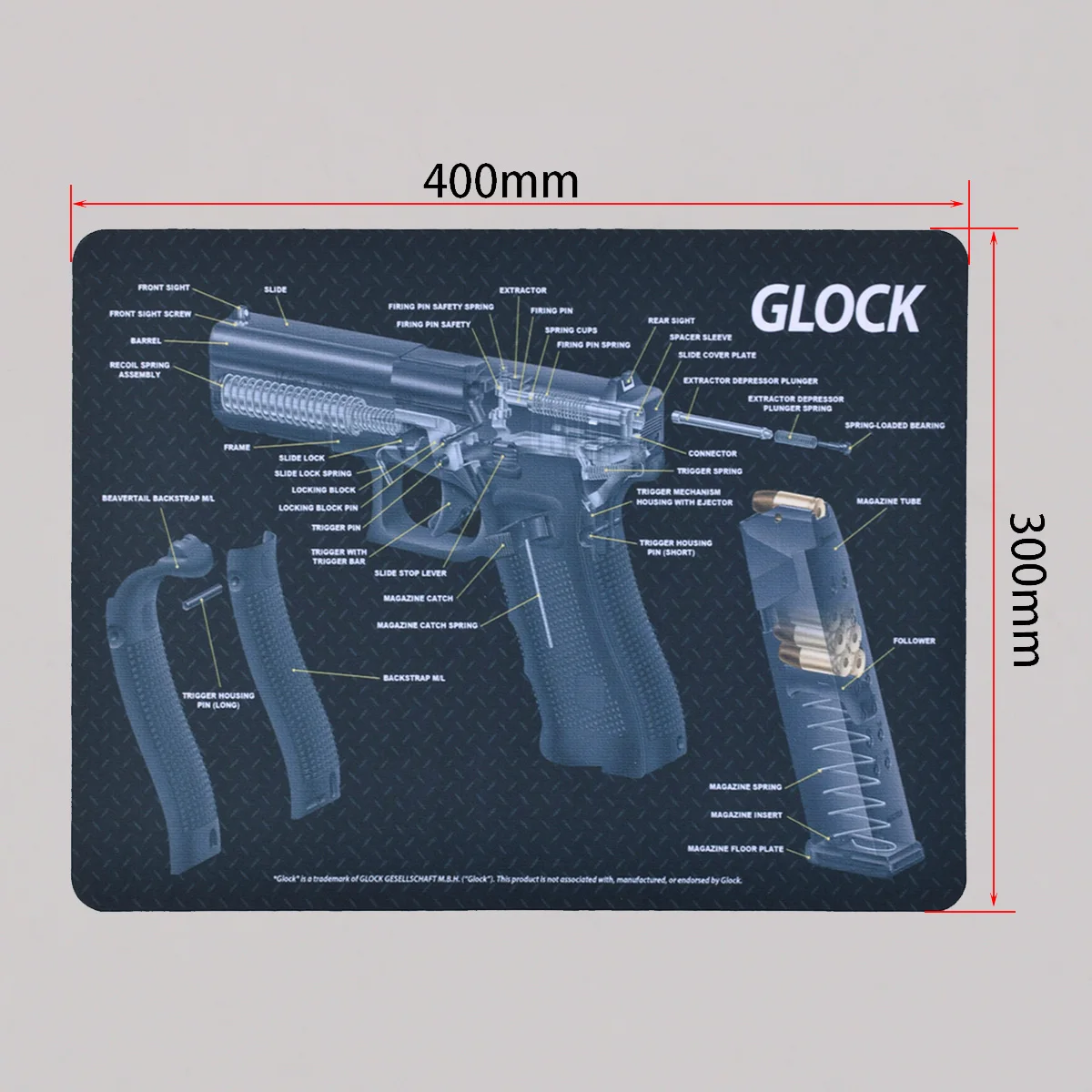 Característica: 1. Proteja su arma y su área de trabajo: la suave superficie de fibra termoplástica garantiza que su arma no se raye, mientras que la parte posterior de neopreno de caucho de 3 mm de espesor protegerá su superficie de trabajo y evitará que la alfombra se resbale 2. Pistola de limpieza de alfombras de calidad: esta pistola de limpieza Glock Moquette de Tekmat está fabricada según un estándar exigente que comienza con cero resistencia al agua y al aceite de impresión por sublimación cuyas fibras durarán toda la vida. 3.Fácil de usar: esta alfombra de limpieza para pistola viene con una descripción general de la historia de la pistola, así como un diagrama de piezas simple de seguir que representa su pistola y rueda para un fácil almacenamiento.
