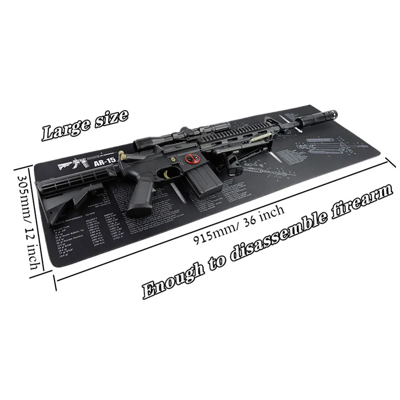 Rendimiento: Con una capa protectora, incluso si hay gotas de aceite y agua en el tapete de limpieza, podemos asegurarnos de que el producto esté como nuevo después de limpiarlo.Con una impresión clara del diagrama de la pistola, puedes poner tus accesorios en él de forma ordenada.