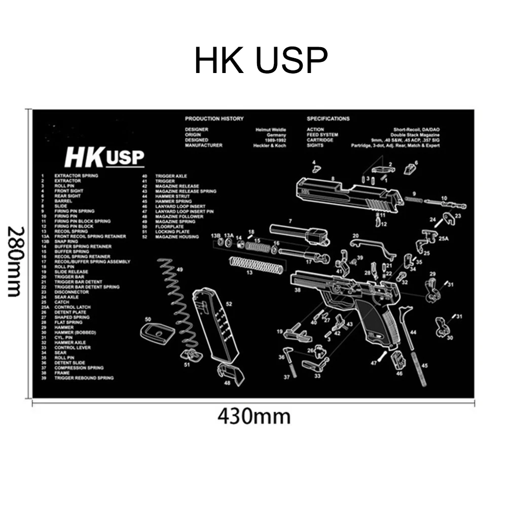 Lo suficientemente grande como para desmontar rifle, pistola, escopeta, etc., armas de fuego.