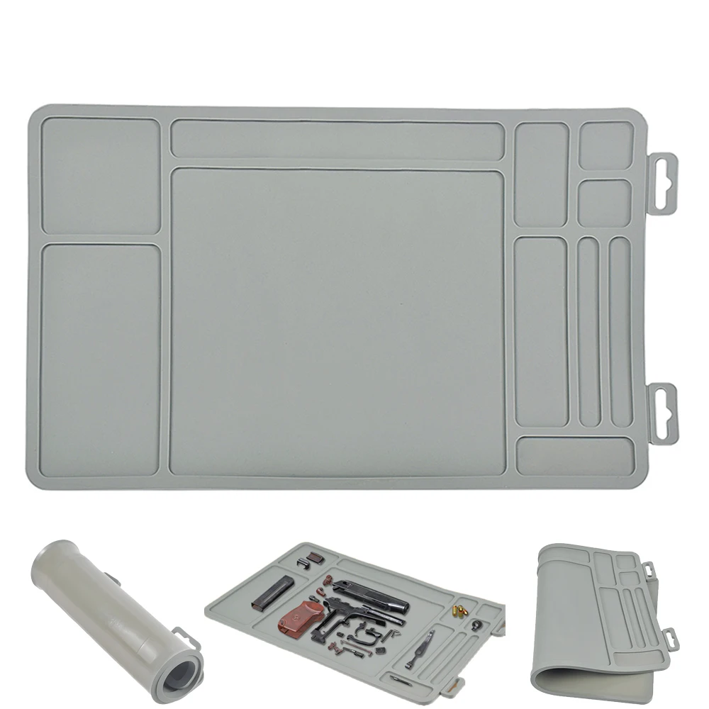 El material de PVC tiene buena resistencia al desgaste, lo que puede evitar eficazmente que las armas de fuego rayen o dañen las mesas u otras superficies de trabajo durante el proceso de limpieza.