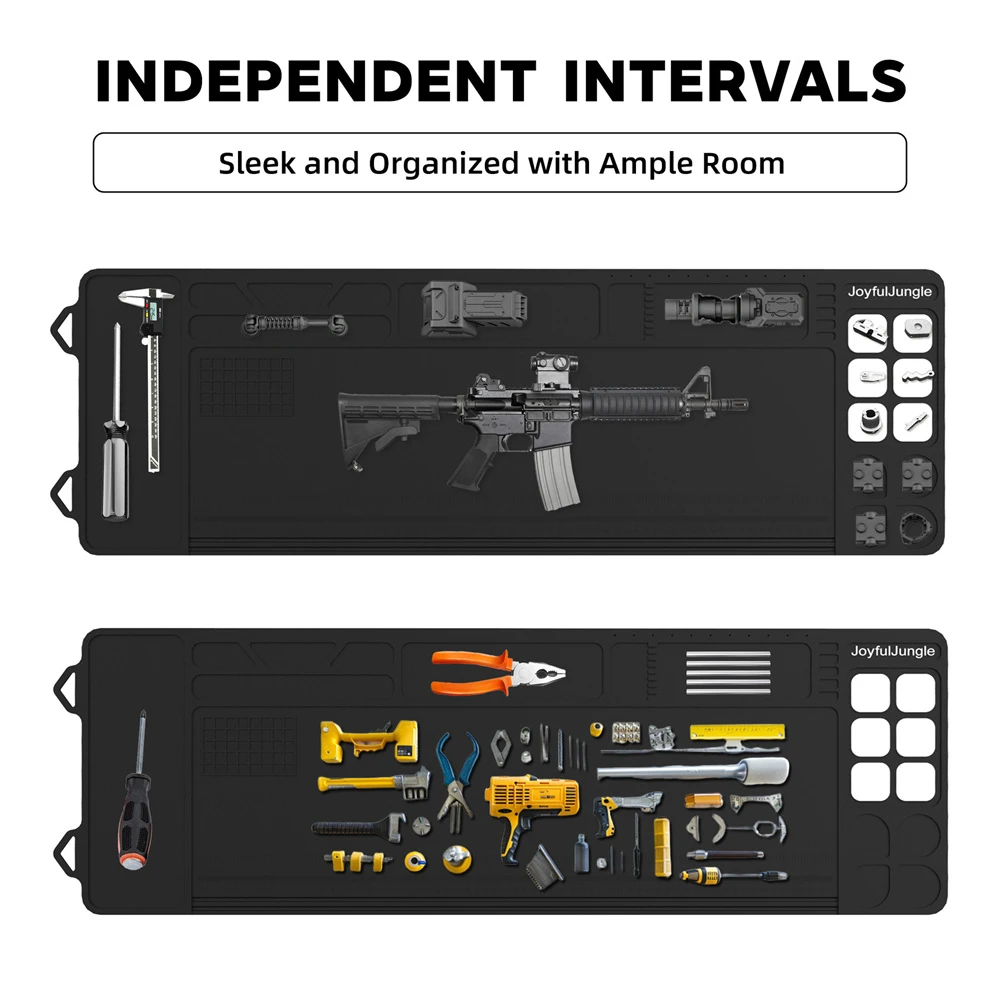 Hecho de material de PVC de alta calidad, el kit de limpieza de pistola se limpia con un paño en segundos; simplemente use una toalla o una toalla de papel para eliminar el aceite, la grasa o la suciedad.Además, la parte inferior lo mantiene firmemente en su lugar durante la limpieza, para que obtenga un espacio de trabajo estable y antideslizante.