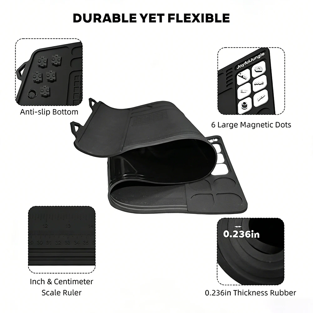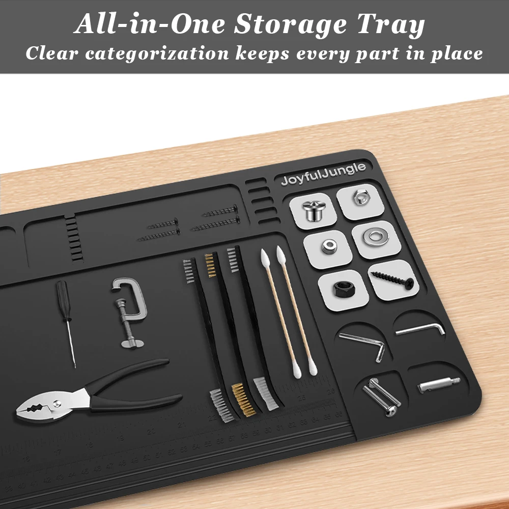 La alfombrilla de limpieza de armas tiene 6 mm de grosor de 0,24 pulgadas y cuenta con 6 puntos magnéticos con muchos compartimentos separados.Estos elementos te ayudan a organizar y almacenar varias piezas pequeñas, para que puedas limpiar tu arma sin preocuparte por perder ningún componente.