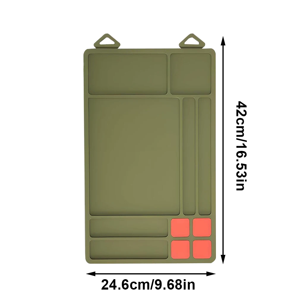 La alfombrilla de limpieza de armas con bandeja de piezas organizadoras magnéticas mantiene organizados los resortes y otras piezas pequeñas al limpiar la pistola.Las secciones empotradas son lo suficientemente profundas como para evitar que el aceite y las piezas entren por todo el lugar.Combinación perfecta para tu kit de limpieza de armas y accesorios de armas.