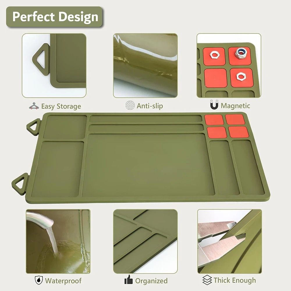 Hecho de material de goma grueso antideslizante suave.Los disolventes y los aceites se pueden limpiar fácilmente con un paño para armas.Esta alfombra está diseñada para ser duradera y duradera.