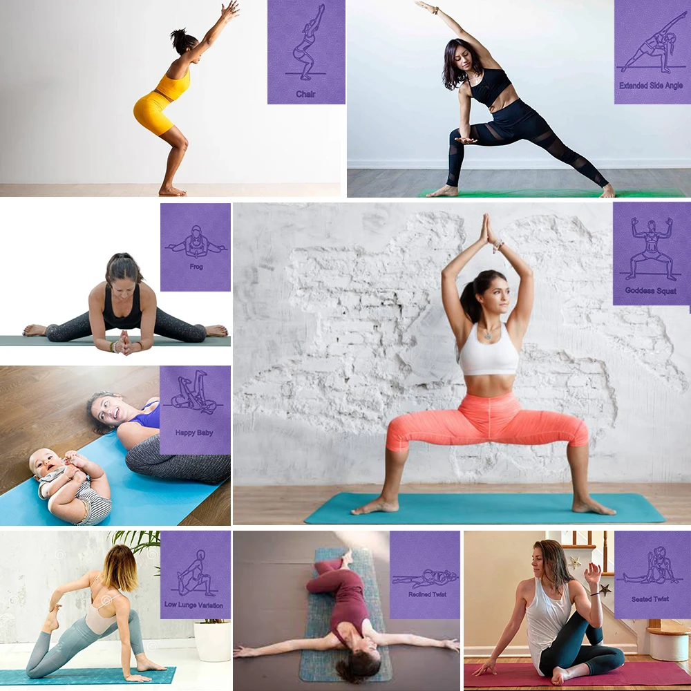 183*60cm TPE Comfort Yoga Mat 6mm antideslizante deportes Fitness Mat ejercicio Yoga y Pilates gimnasia Mat para principiantes suministros