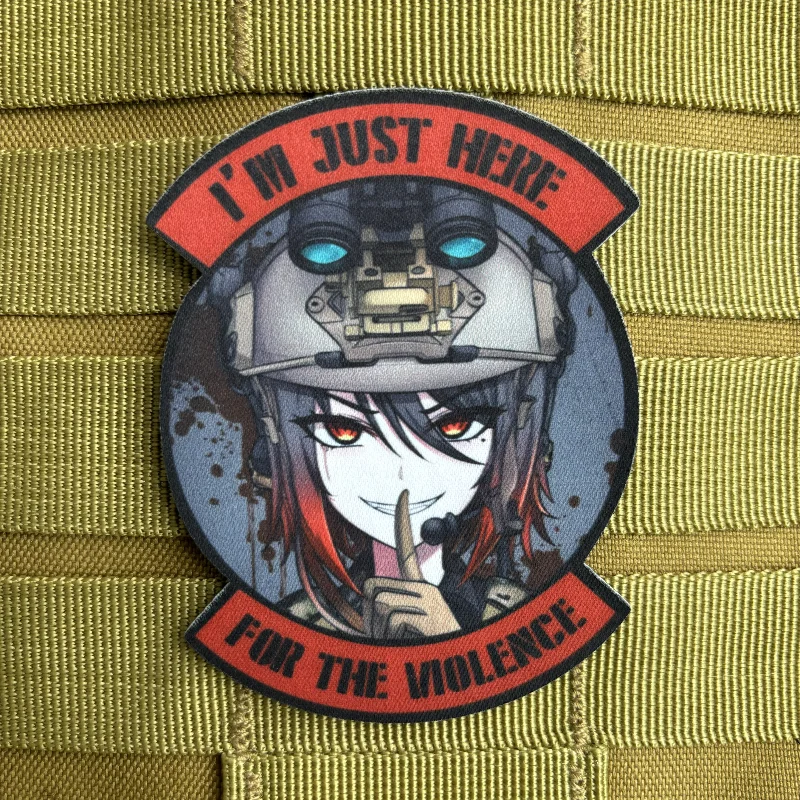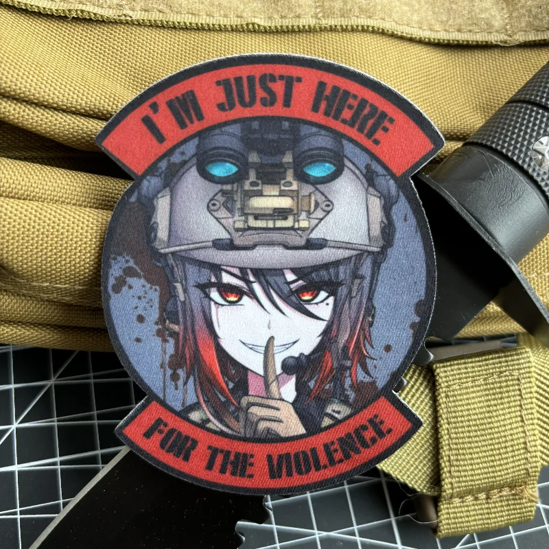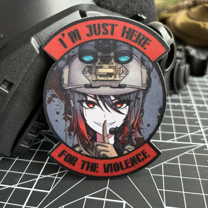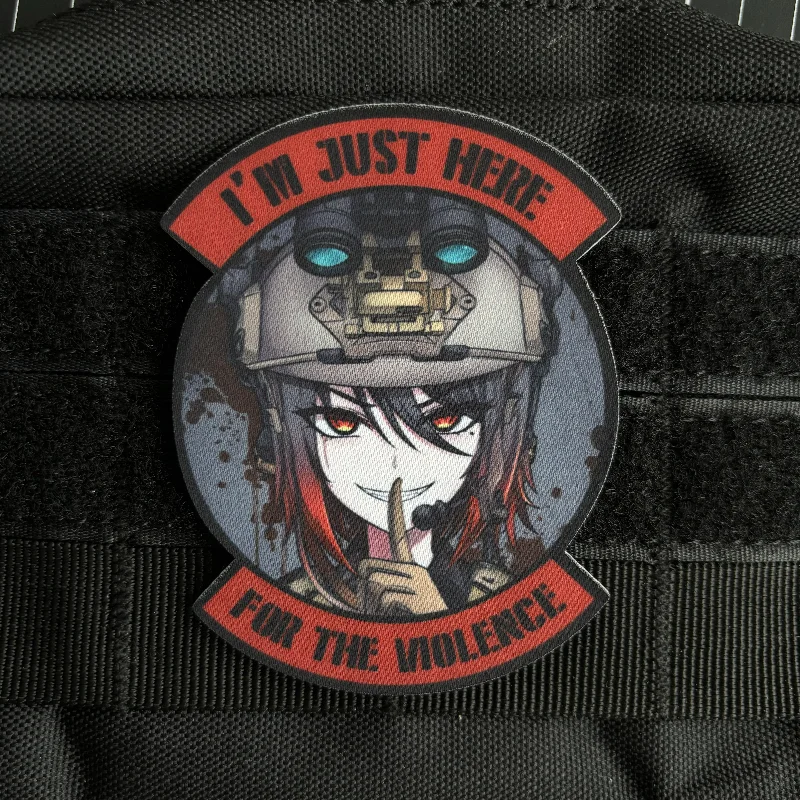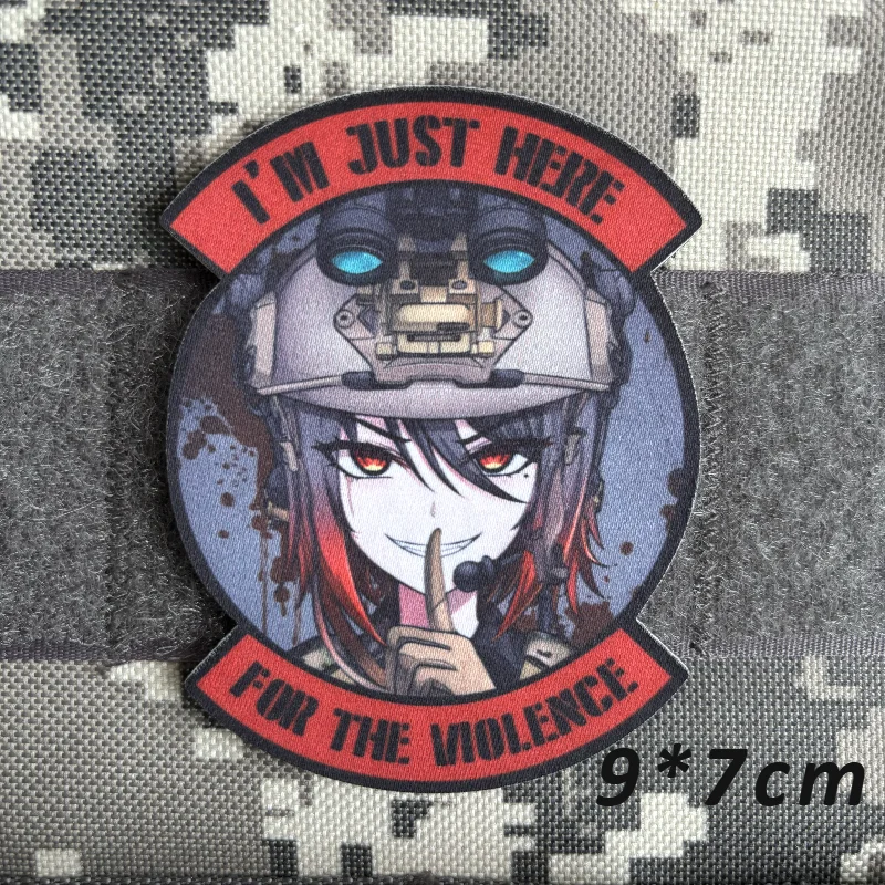 Estoy aquí para el parche táctico de violencia Anime Girl Morale Badge parches de impresión Hook and Loop mochila militar pegatina