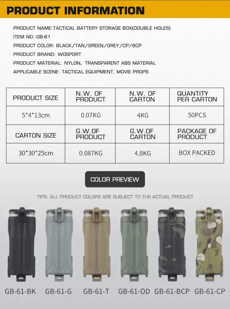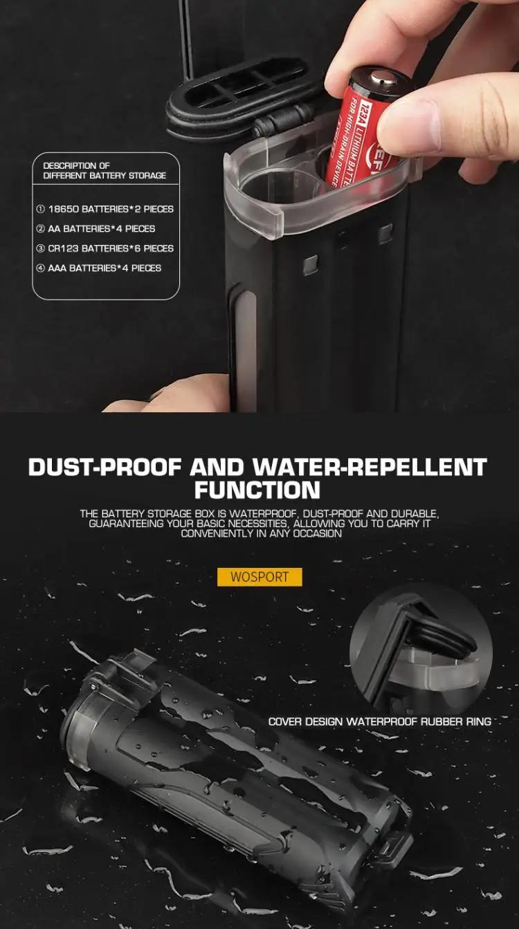 Estuche de almacenamiento de baterías repelente al agua (orificios dobles) para baterías CR123, AAA y AA 18650