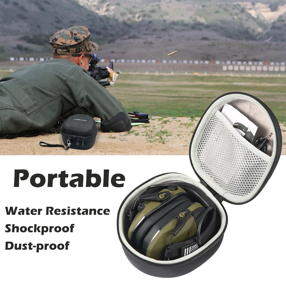 Estuche resistente y resistente: el interior está hecho de gran terciopelo y el exterior está hecho de material EVA de alta calidad, que puede proteger su orejera de golpes, semiempermeable, a prueba de polvo y resistente al desgaste.