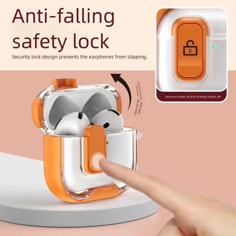 Al adoptar una cerradura única y una función de apertura automática, cuando se presiona el botón "abrir", la parte superior de la funda protectora se abrirá automáticamente, lo que le brinda comodidad para acceder fácilmente a los auriculares.