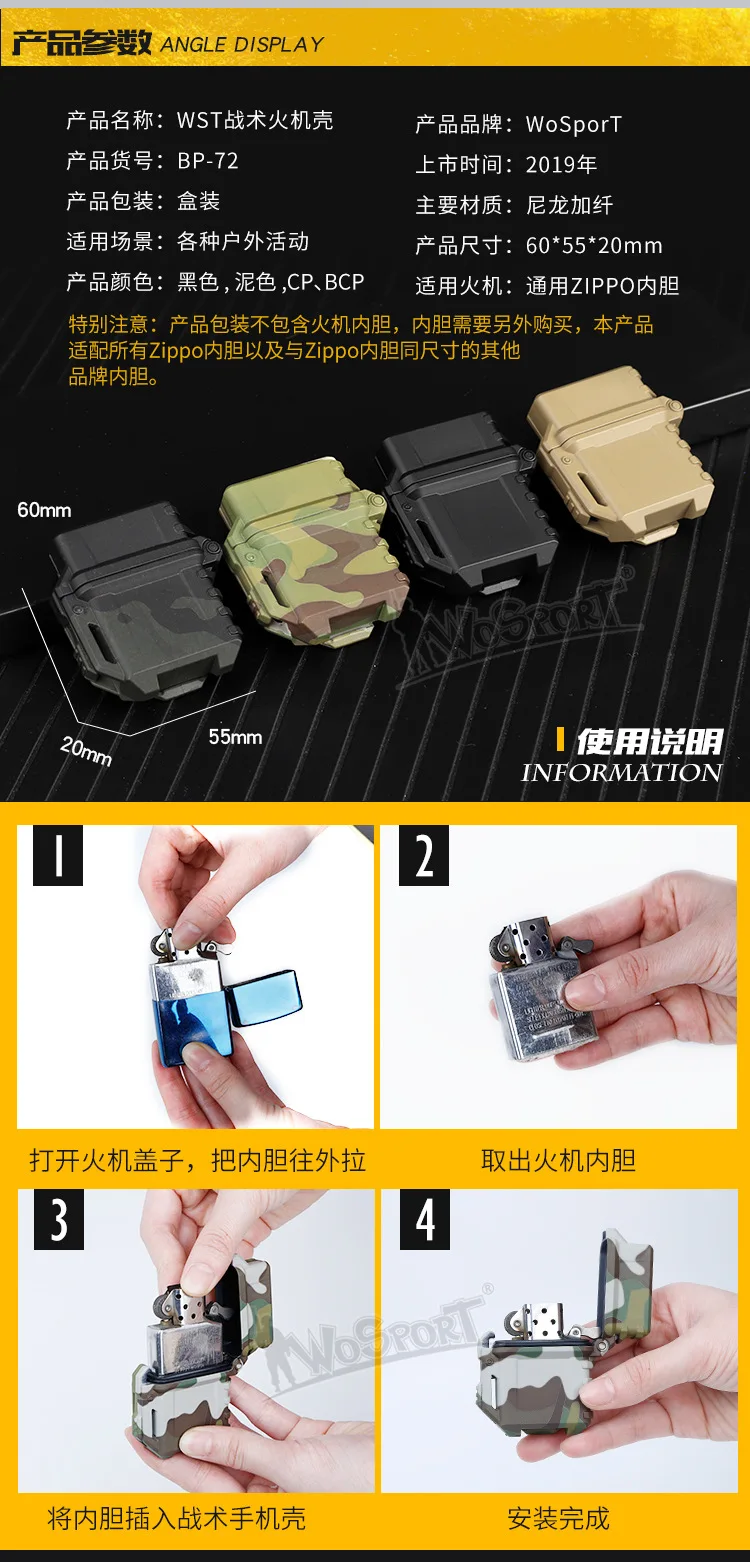 Estuche para encendedor táctico Molle Bionic proceso de laca sólida zippo universal (sin inserto)