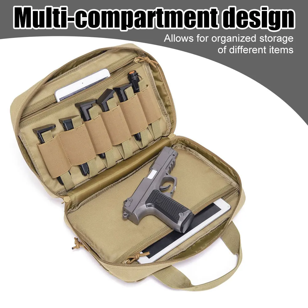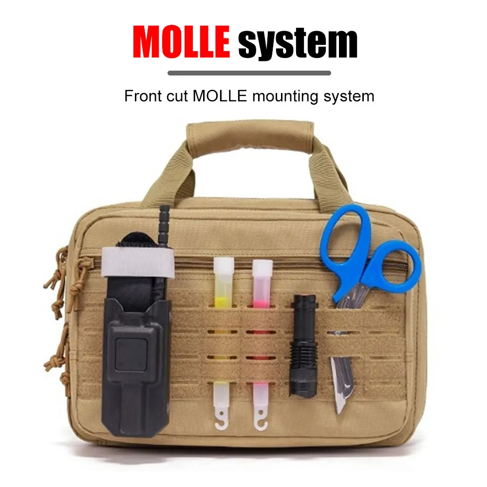 3. 【ELEGANTE Y FUNCIÓN】 Este estuche de transporte para pistolas cuenta con una correa Molle en la parte delantera, perfecto para sujetar más su equipo pequeño.También se utiliza idealmente como bolsa para tabletas y bolsa EDC multiusos para actividades variadas.