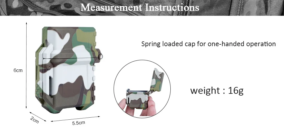 Estuche táctico de inserción militar para Camo EDC operado con una mano, estuches MOLLE para exteriores, caja de encendedor estándar de fibra de nailon para caza