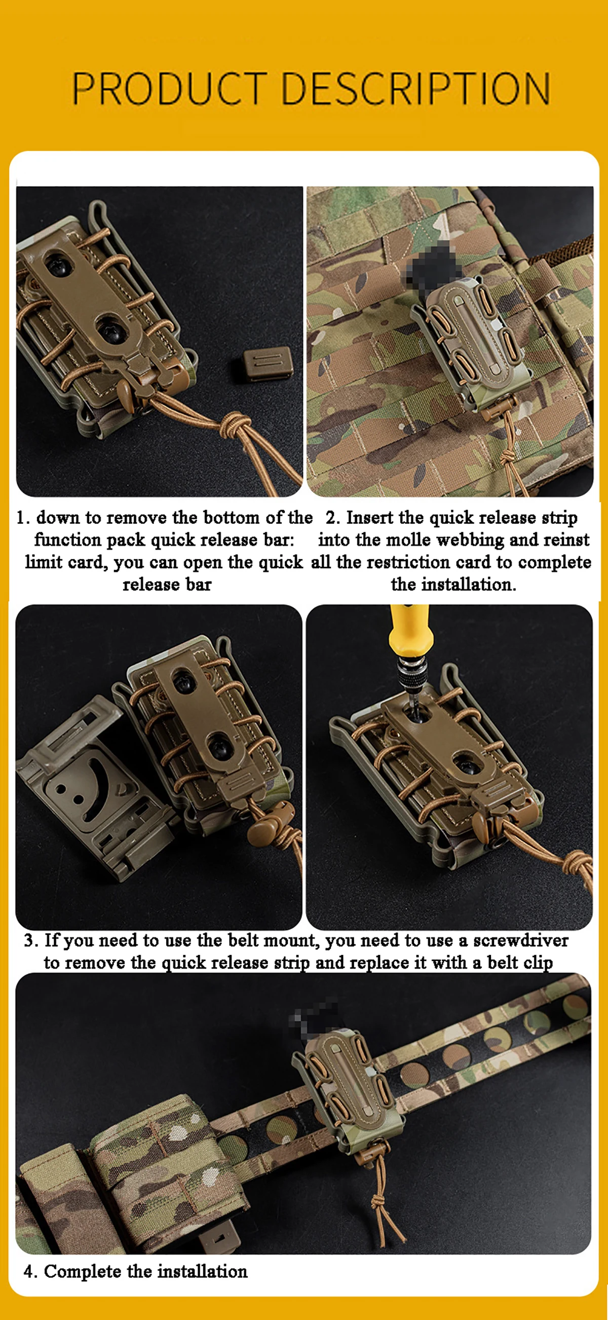 ✔ The Molle shoulder strap on the back is shaped for versatility and can be loaded on a Molle web or placed on a belt for a good fastening effect.