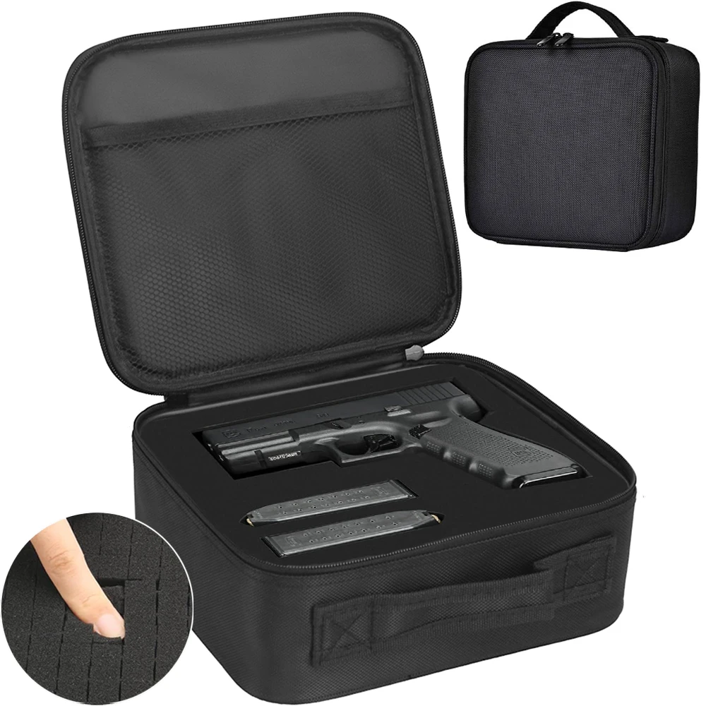 2.【Almacenamiento eficiente】Esponja de esponja extraíble incorporada, según el tamaño de su pistola, ajuste la esponja del medio al espacio de almacenamiento apropiado, simplemente saque el bloque de esponja precortado para almacenar perfectamente sus artículos, ¡lo que facilita su almacenamiento!La bolsa de malla superior amplía el espacio de almacenamiento para balas, revistas u otros accesorios.