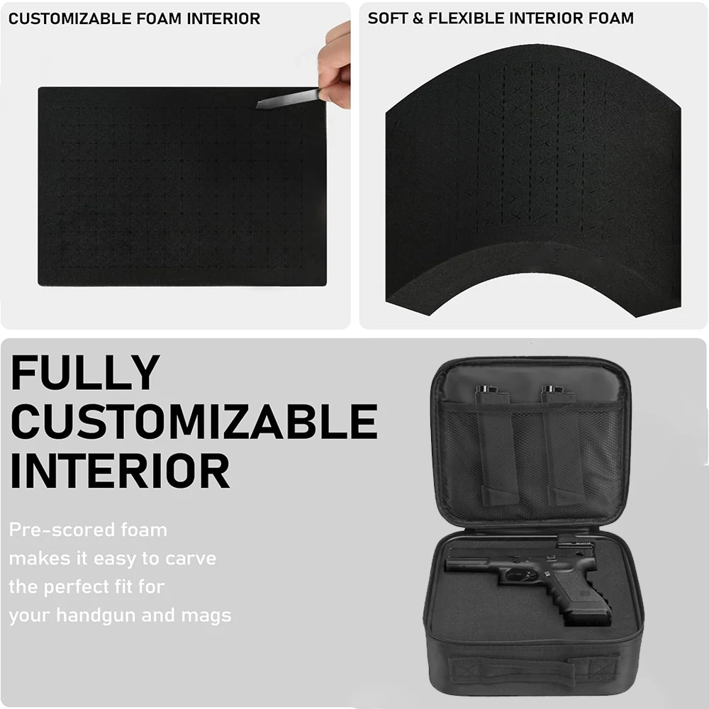 3. 【Espuma personalizable para bricolaje】 Con espuma para bricolaje precortada, este estuche le permite personalizar fácilmente el interior para un ajuste perfecto.Compatible con una amplia gama de pistolas, incluidas Glock, Smith & Wesson M&P, Colt 1911, SIG Sauer P-Series, Beretta 92 Series, Springfield XD, Walther PPS, Heckler & Koch, Walther PPK, Ruger y más.Además, la espuma se puede ajustar para guardar de forma segura revistas adicionales, herramientas de limpieza y otros accesorios, manteniendo todo organizado en un espacio conveniente.