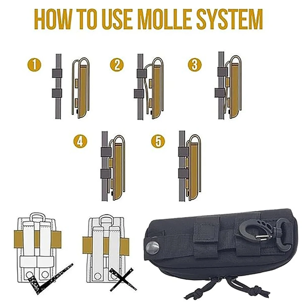 Sistema Molle: colóquelo al cinturón, correas de la mochila, chalecos o cualquier bolsa modular Molle