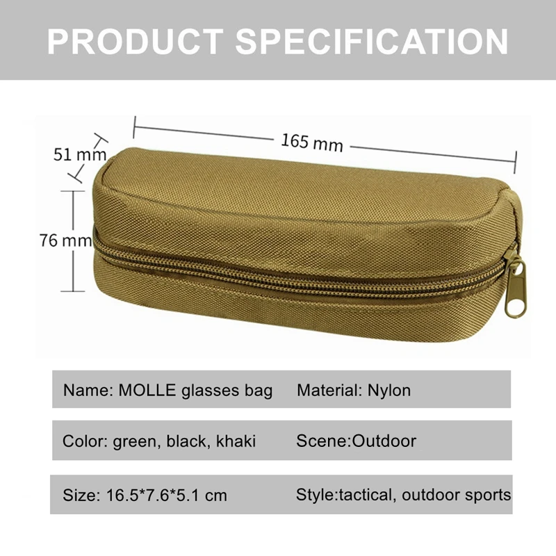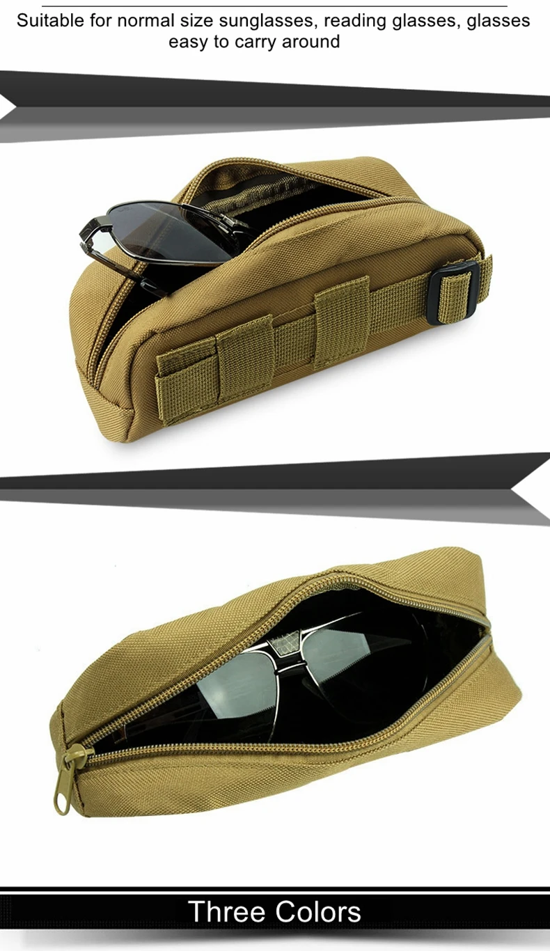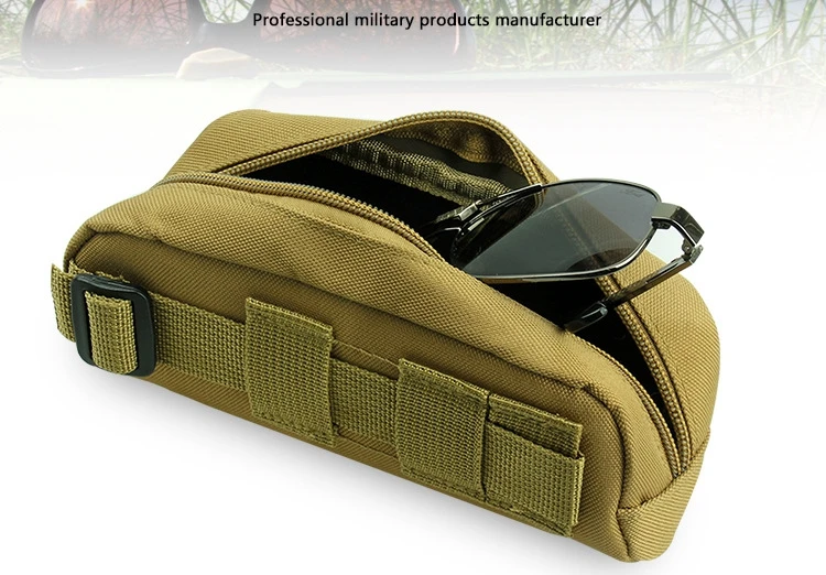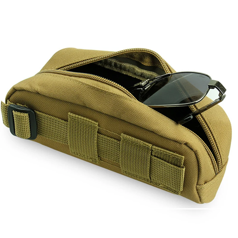 Estuche táctico de nailon para gafas de sol al aire libre, bolsa portátil con cremallera Molle EDC, caja de gafas para acampar, bolsa colgante militar de cintura para caza