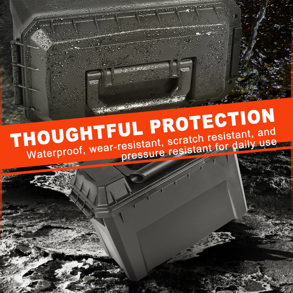 4.Un ambiente seco y libre de polvo es crucial para mantener la munición.Nuestro contenedor de almacenamiento para municiones está protegido por una cubierta de compresión impermeable y a prueba de polvo con junta;Muy adecuado para acampar, cazar o campos de tiro;También puedes instalar otros elementos.
