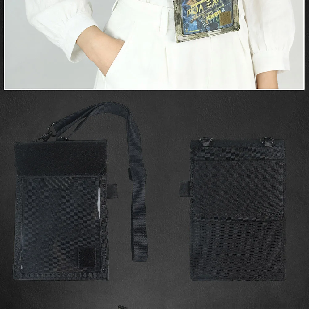 Estuche táctico para tarjetas de identificación, cordón para el cuello, organizador de tarjetas de crédito, cordón ajustable para el cuello, bolsa de almacenamiento de documentos credenciales