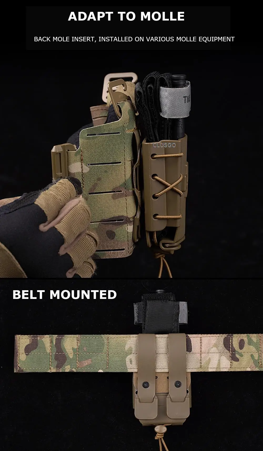 Equipado con 2 clips molle y fijado mediante tornillos, puede usar la bolsa TQ en diversos equipos tácticos, como chaleco táctico, letrero táctico, aparejo táctico para el pecho, cinturón de combate, mochila táctica, cargador softshell, etc.