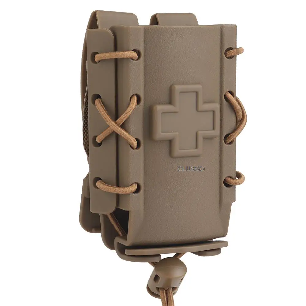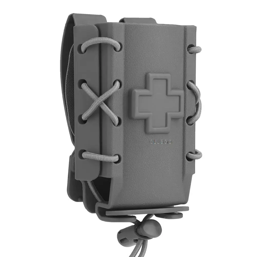 La bolsa para torniquete tiene un sistema de cordón elástico ajustable. Puede ajustarlo para obtener una abertura superior más suelta o más apretada para llevar sus kits médico ifak en su entorno de comodidad.