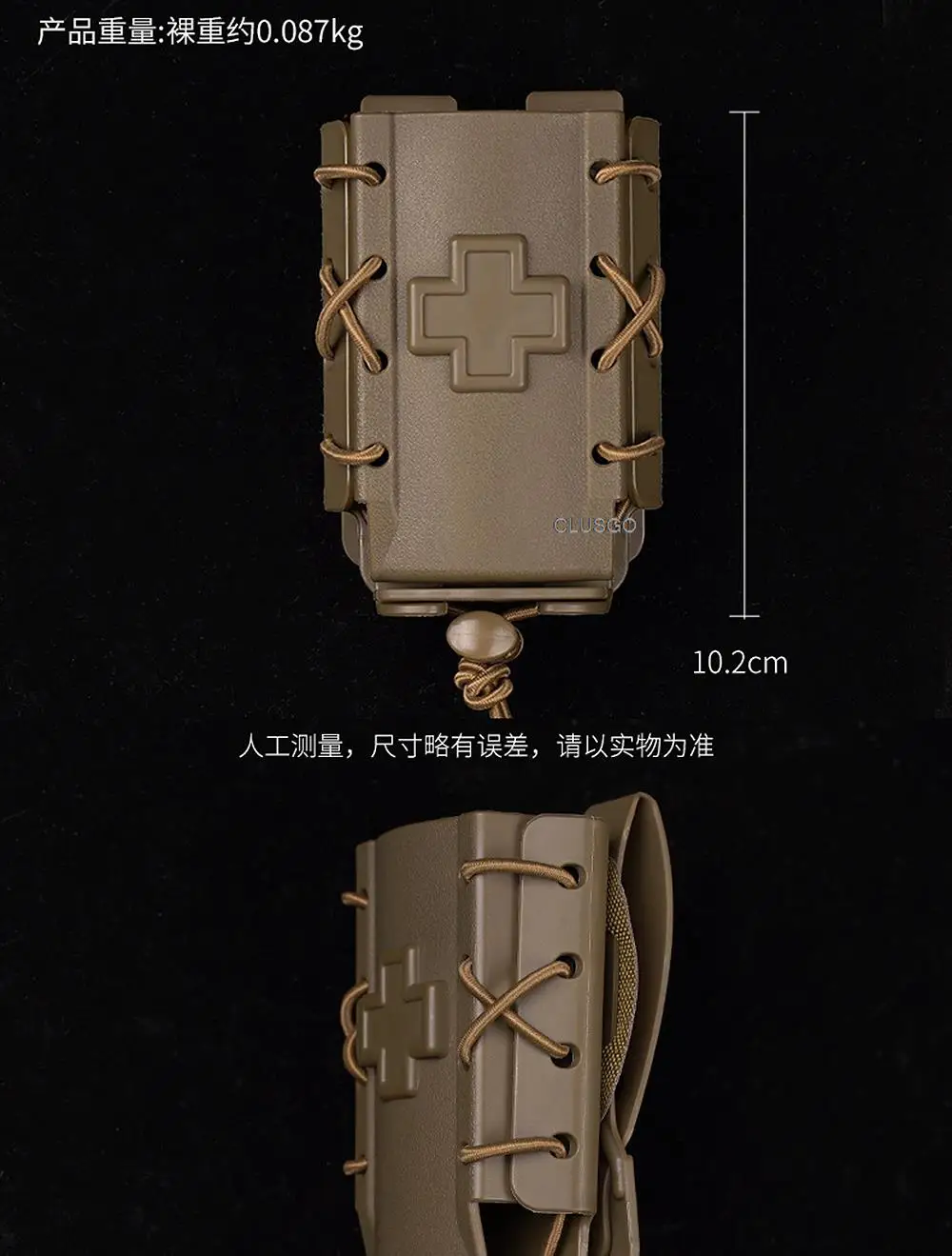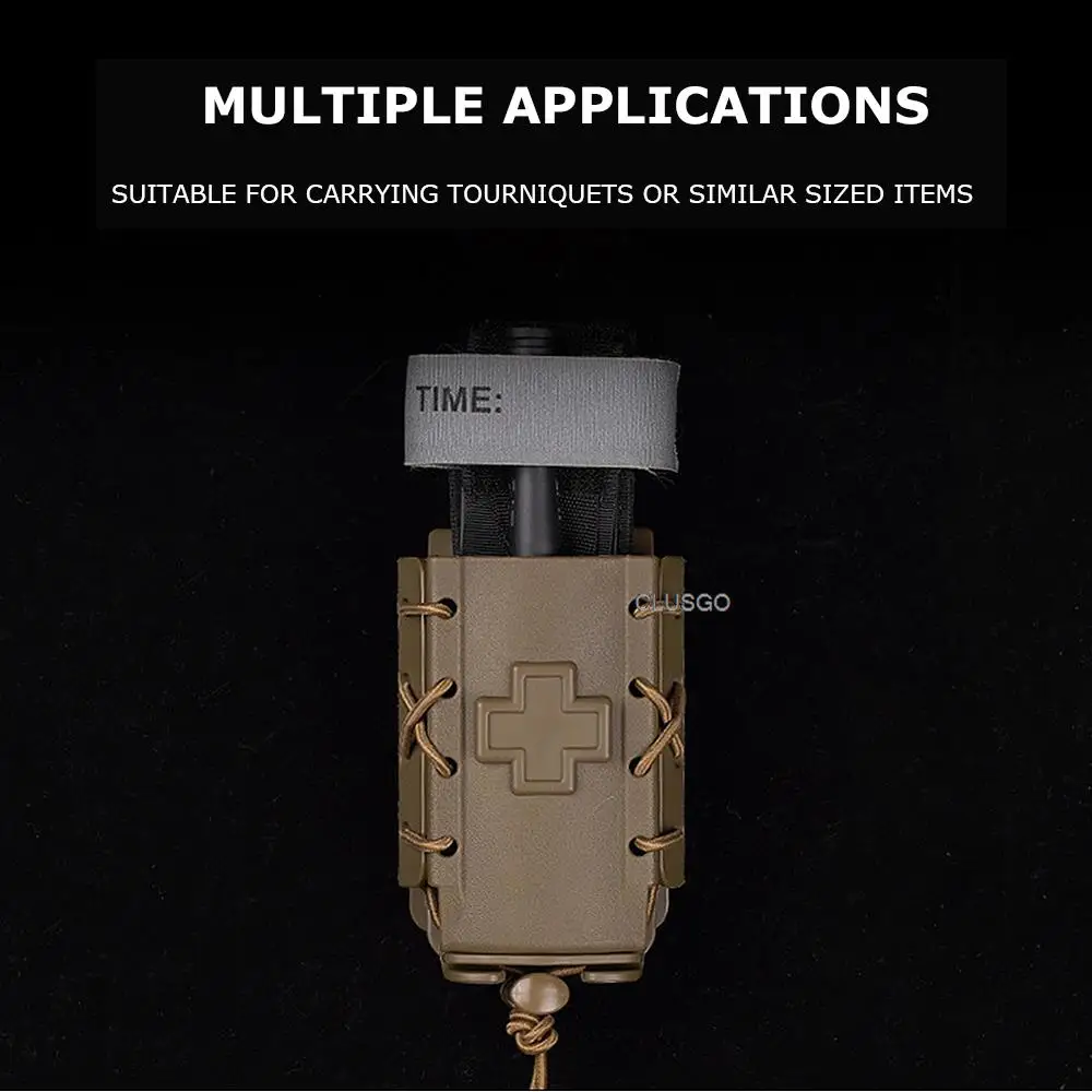 Este soporte táctico para TQ contiene varios torniquetes en el mercado, como torniquete C-A-T, torniquete táctico SOF, torniquete Extremity SAM XT, etc.Con un diseño superior abierto, es fácil acceder y sacar el torniquete para tener un rescate rápido para el sangrador.