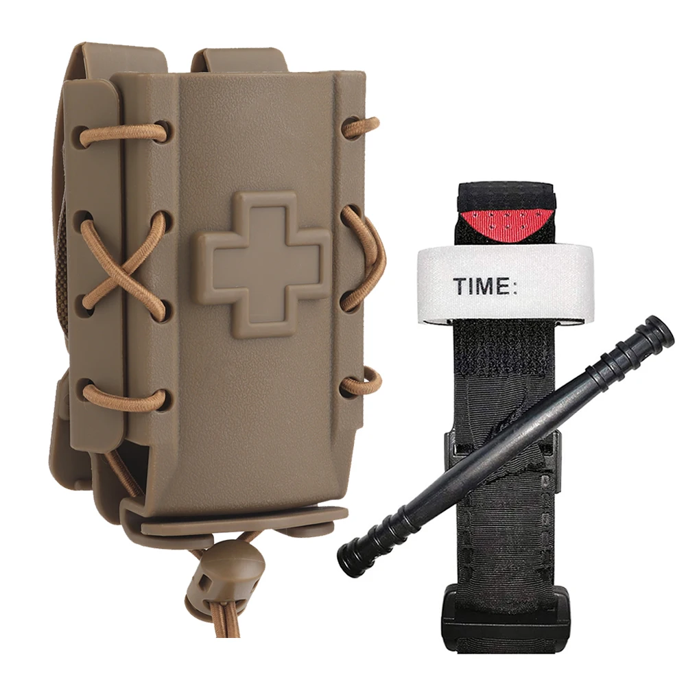 Este soporte táctico para TQ contiene varios torniquetes en el mercado, como torniquete C-A-T, torniquete táctico SOF, torniquete Extremity SAM XT, etc.Con un diseño superior abierto, es fácil acceder y sacar el torniquete para tener un rescate rápido para el sangrador.