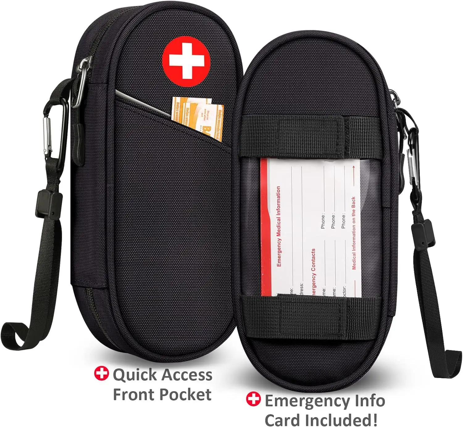 Estuche de transporte de primeros auxilios médicos, bolsa organizadora de medicamentos de viaje aislada, bolsa médica de emergencia con capacidad para 2 EpiPens