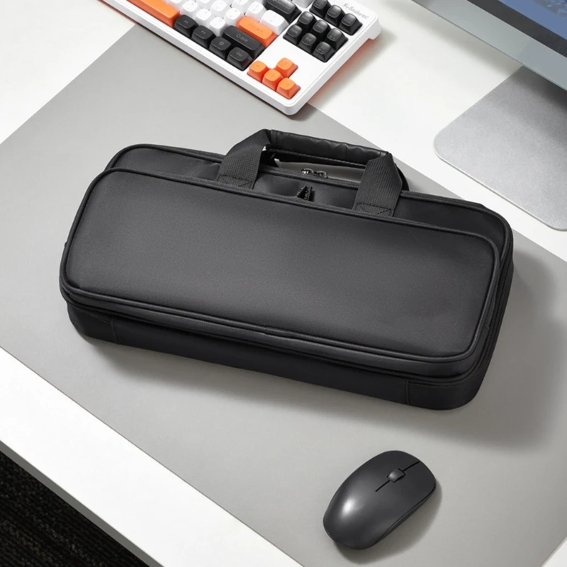 Más allá del teclado mecánico, múltiples bolsillos pequeños y compartimentos de malla en el interior almacenan varios accesorios, manteniendo todo organizado.
