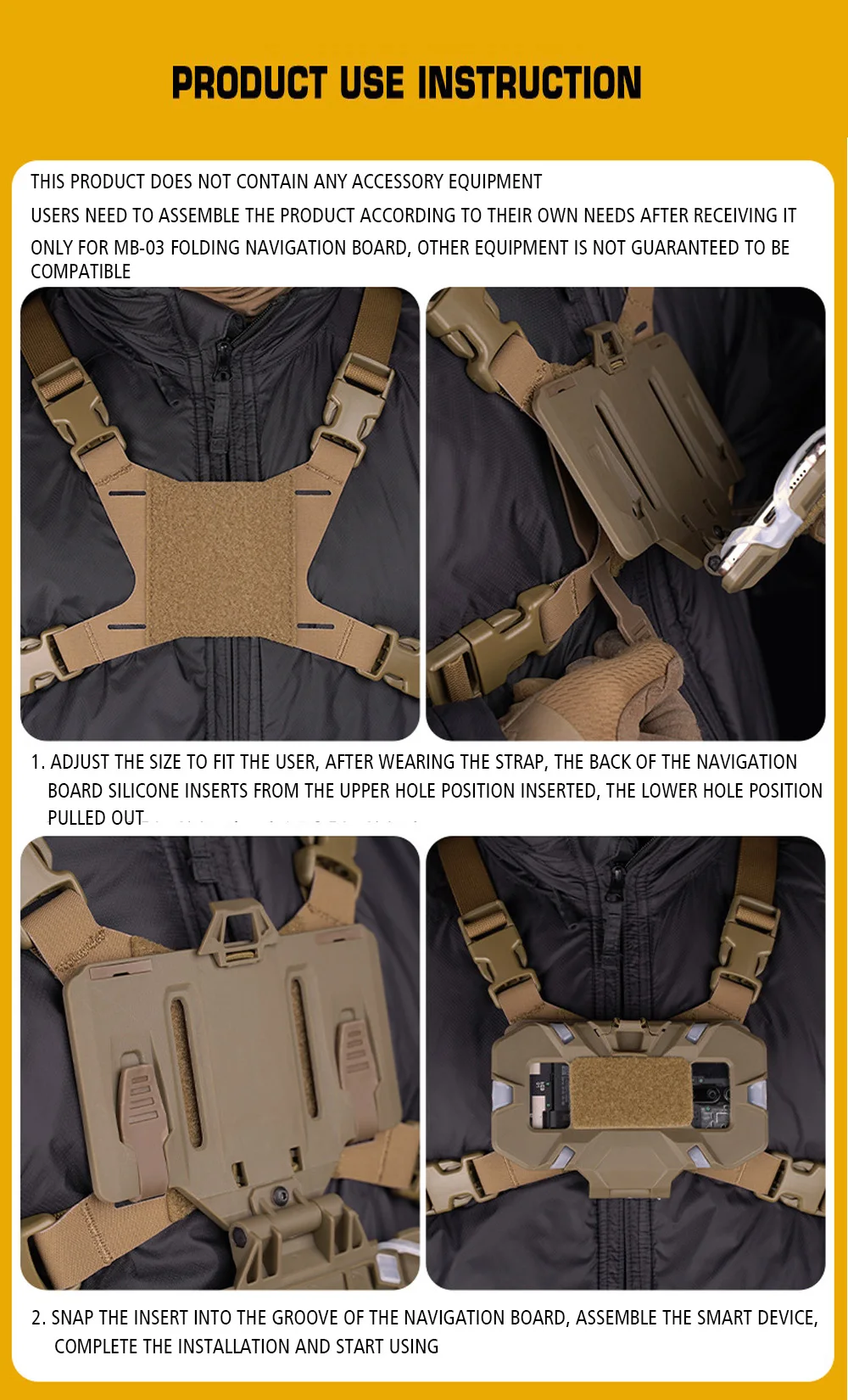Estuches de almacenamiento para teléfono móvil al aire libre, chaleco táctico MOLLE, correa fija para el pecho, caza, senderismo, tablero de mapas de navegación Iphone