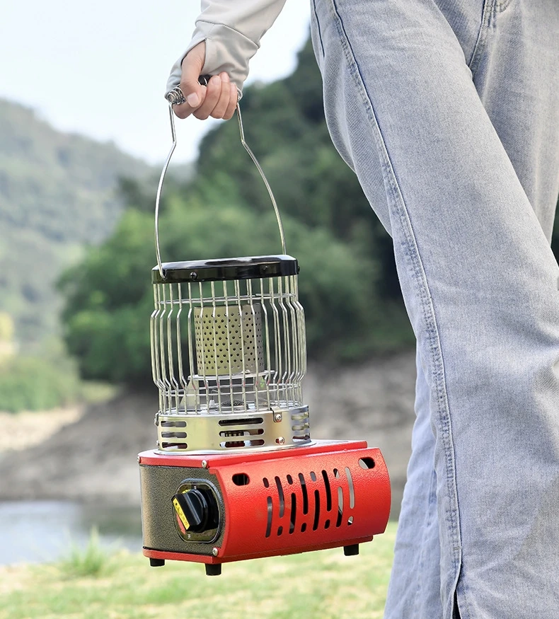 3. Diseño portátil: el calentador de tienda de campaña tiene un mango de metal antideslizante, que está diseñado para adaptarse a la altura de la palma de la mano, es cómodo y hermoso, y es fácil de transportar.