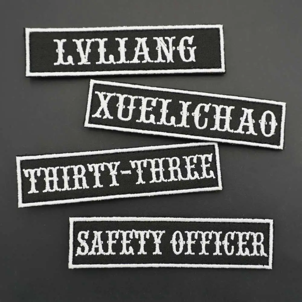 La primera foto insignia recibida pero no es lo que buscamos, vea la segunda foto... debe ser blanca con letras negras y sin respaldo de velcro.....