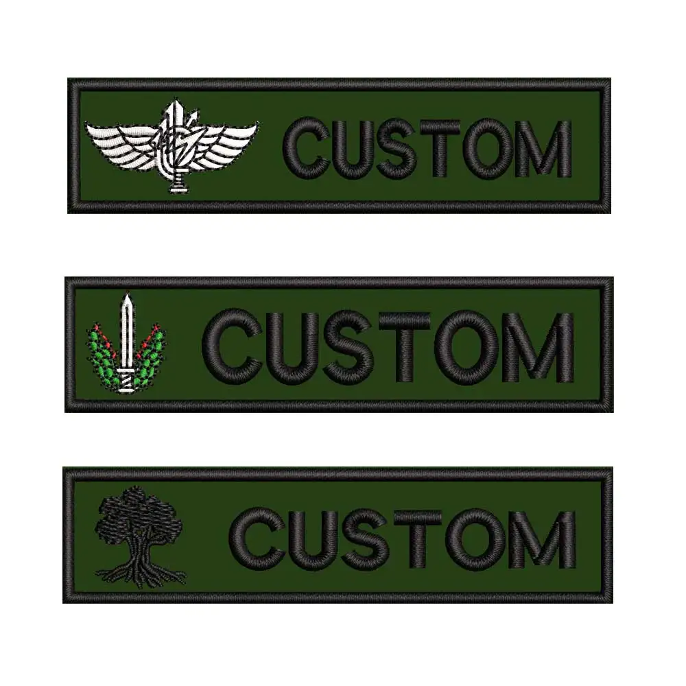 Etiquetas personalizadas con bandera y nombre, parche bordado para planchar, gancho de respaldo