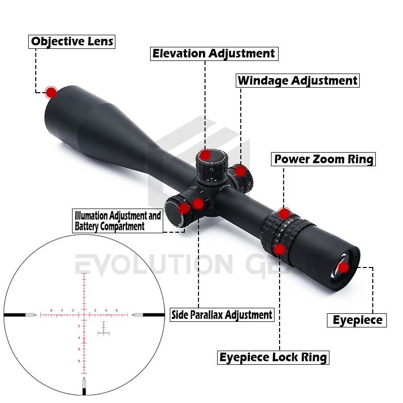 Rango de ajuste interno E: 100 MOA W: 60 MOA