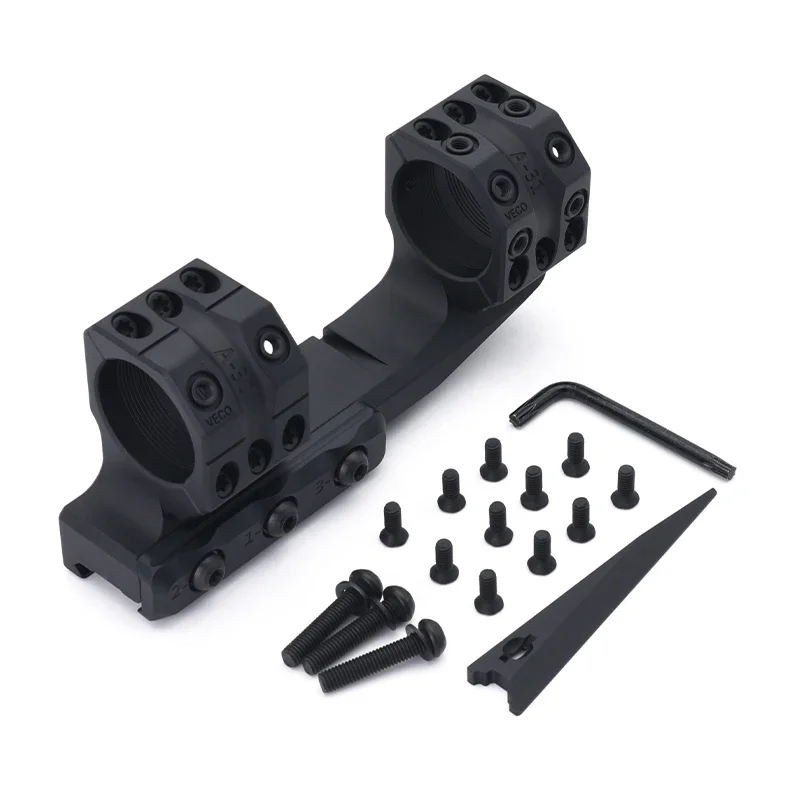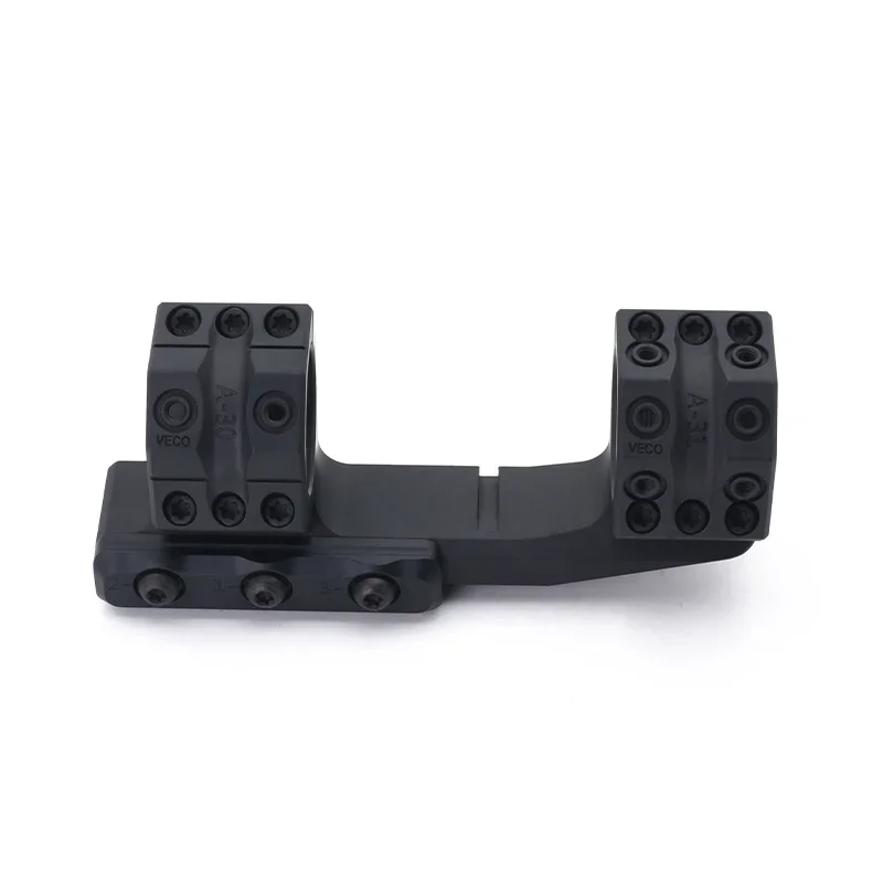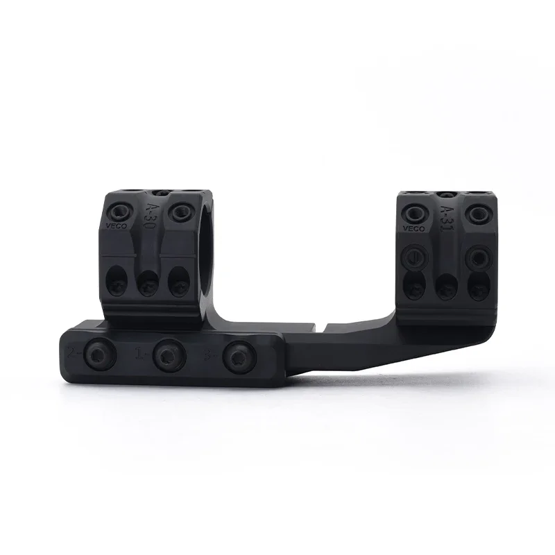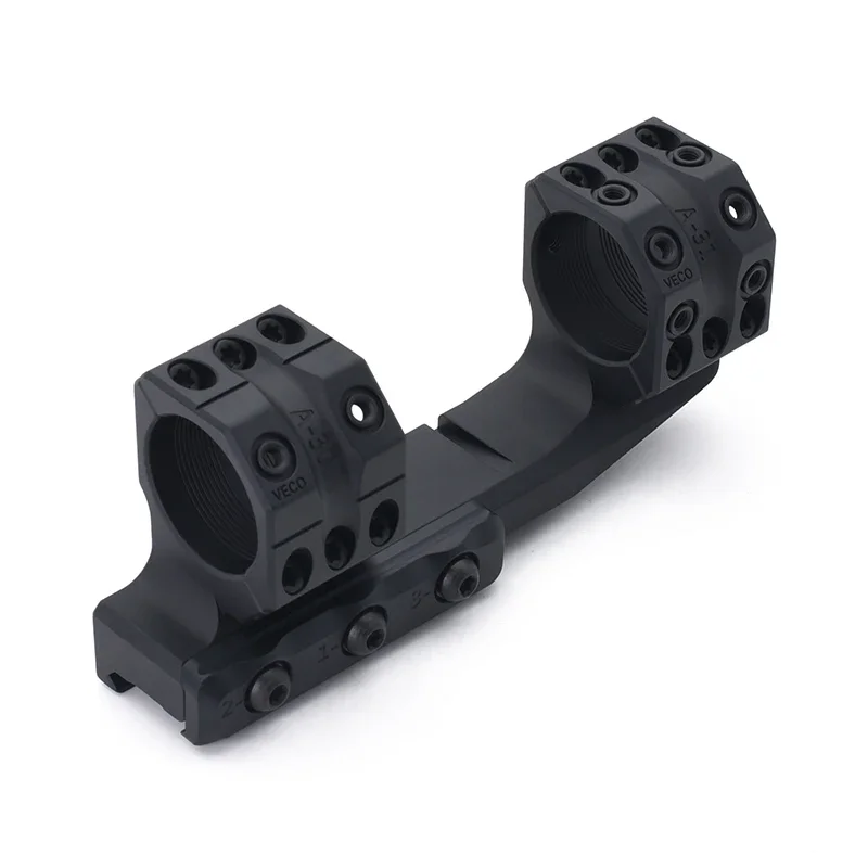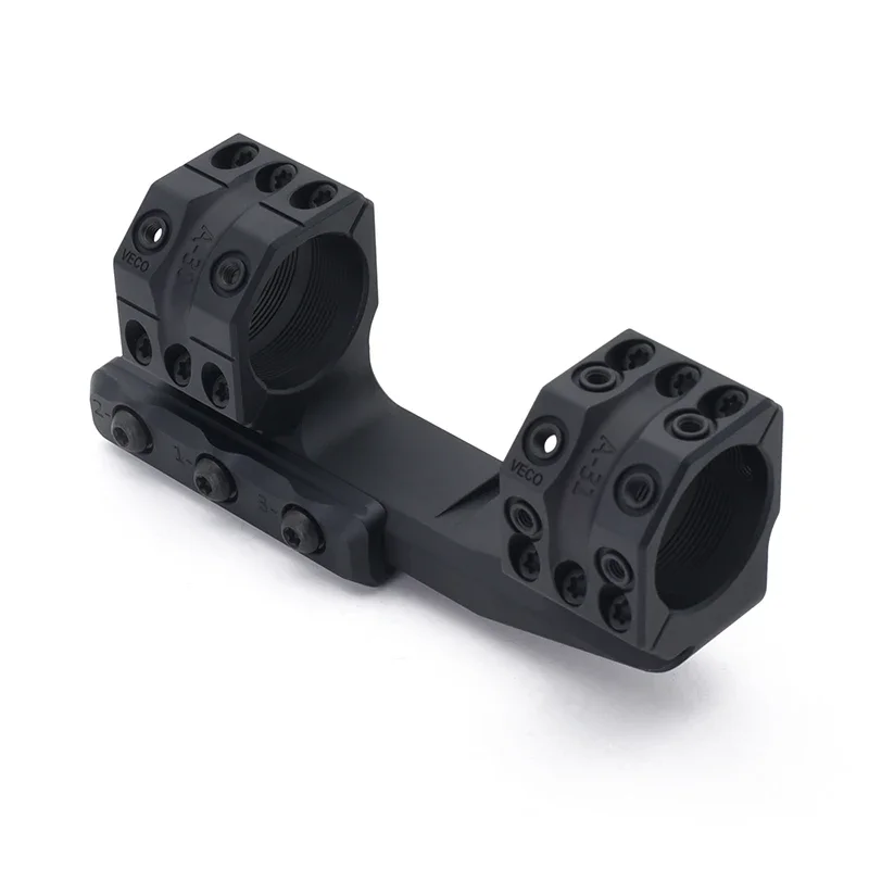 Los anillos de montaje se cortan 45 grados en lugar de la horizontal habitual, lo que proporciona varias ventajas. Los tornillos que sujetan las piezas juntas no están en forma de las perillas, por lo que el tirador puede determinar rápidamente la configuración de las perillas. También le da al tirador una línea horizontal que ayuda al tirador a no girar su arma involuntariamente. Los anillos tienen marcas de índice en la parte superior y derecha, lo que hace que las perillas bajas sean más fácilmente legibles.