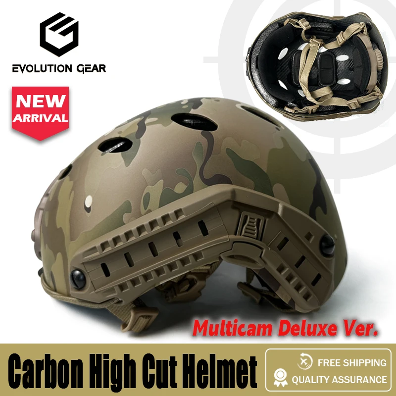 EvolutionGear Casco táctico de carbono de 3 agujeros de corte alto Multicam Deluxe Ver. Casco protector