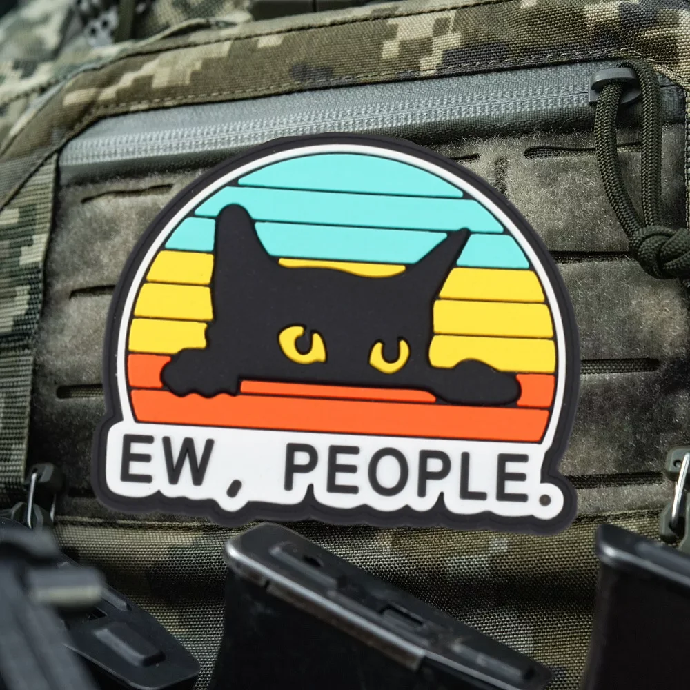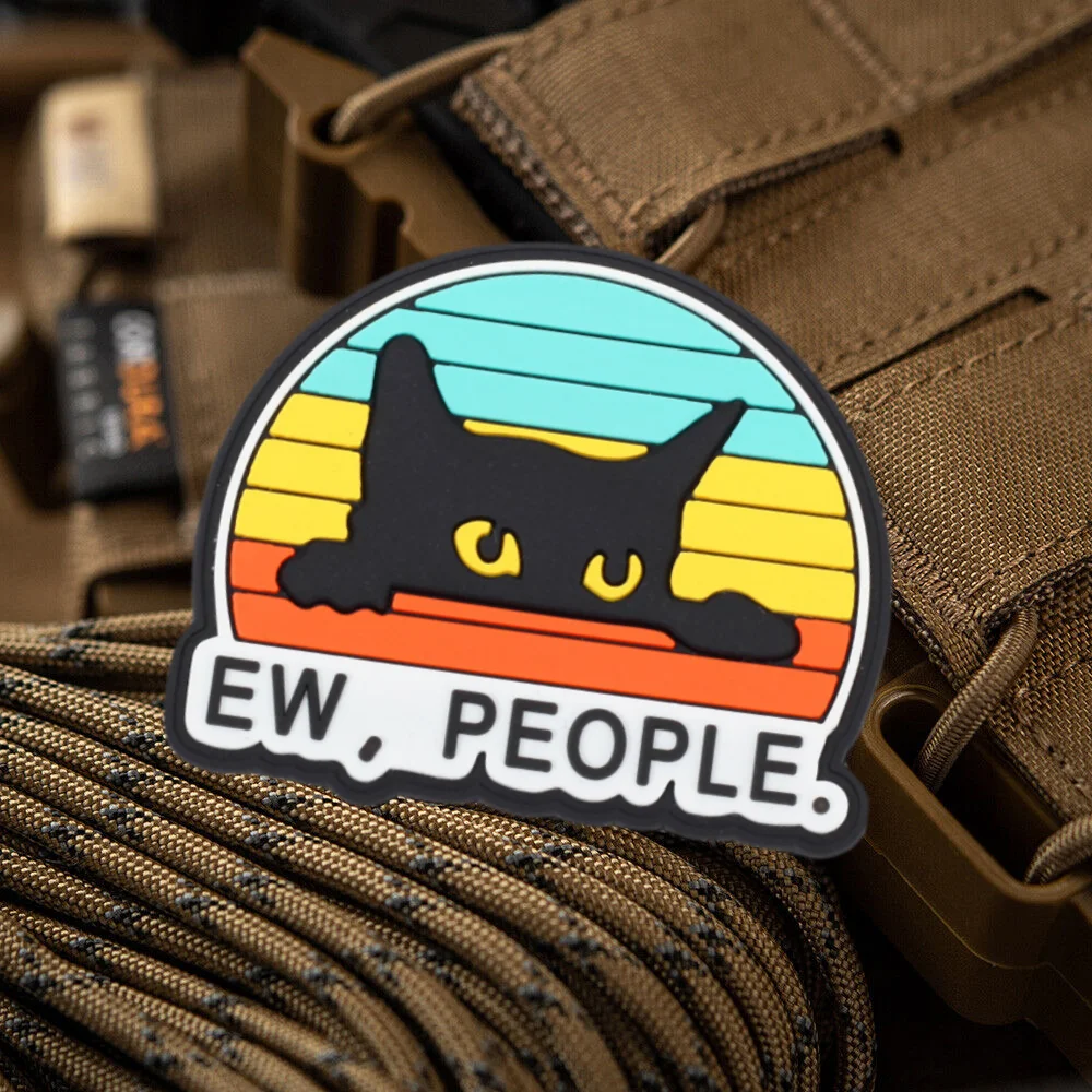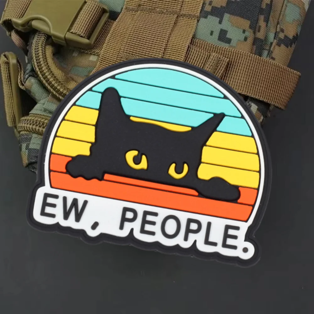 Parche de gato EW, PEOPLE, parches de gatos de PVC bonitos en la ropa, insignia de gancho y bucle, pegatinas tácticas para mochila, apliques de brazalete militar de moral
