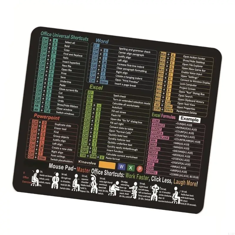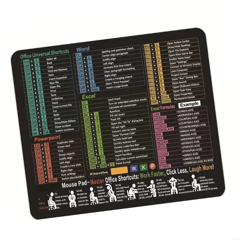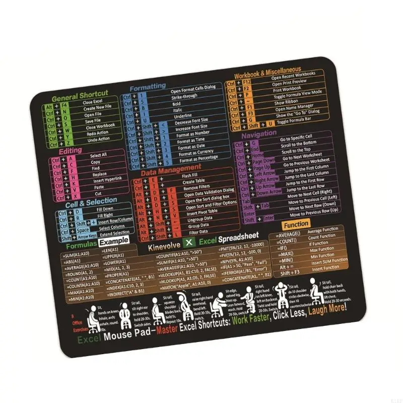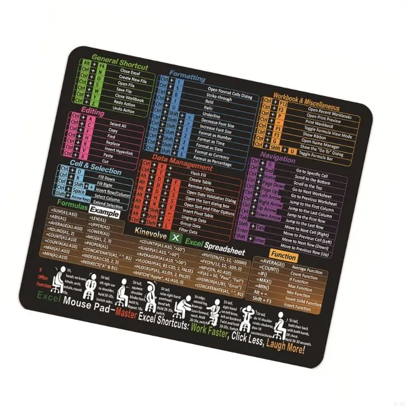Características:OOTDTYEl teclado de acceso directo Excels (11,8" x 9,8") presenta costuras reforzadas, base de goma antideslizante y tela impermeable para mayor portabilidad con fórmulas esenciales impresas en una resolución nítida.