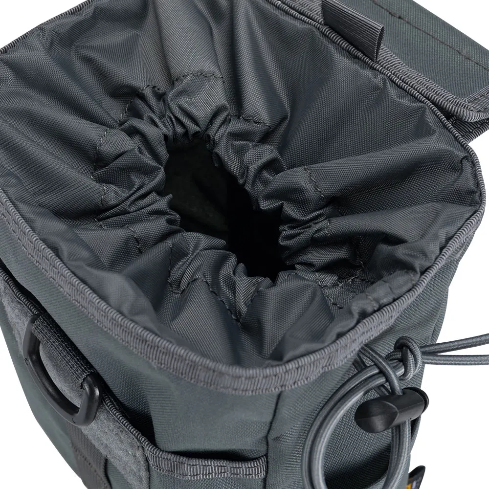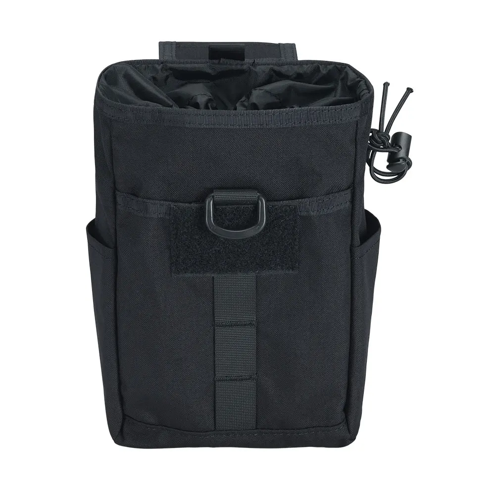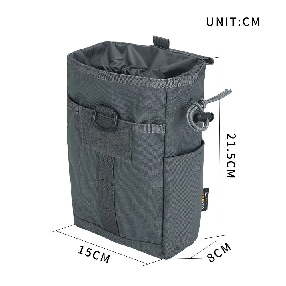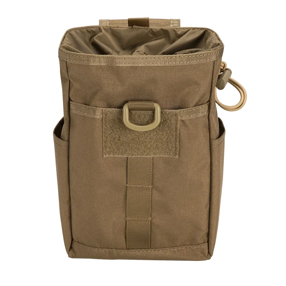 Un bolsillo de bolsa de volcado de utilidad molle superior abierto con cordón principal ajustable y un bolsillo de pegatina mágica frontal. La bolsa de descarga se despliega en una bolsa grande, capaz de contener 6 cargadores redondos AR o AK 30, también se puede utilizar para llevar otras revistas y otros artículos con dos bolsillos en dos lados para sostener una linterna u otros artículos pequeños.