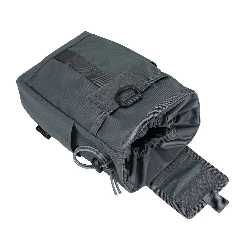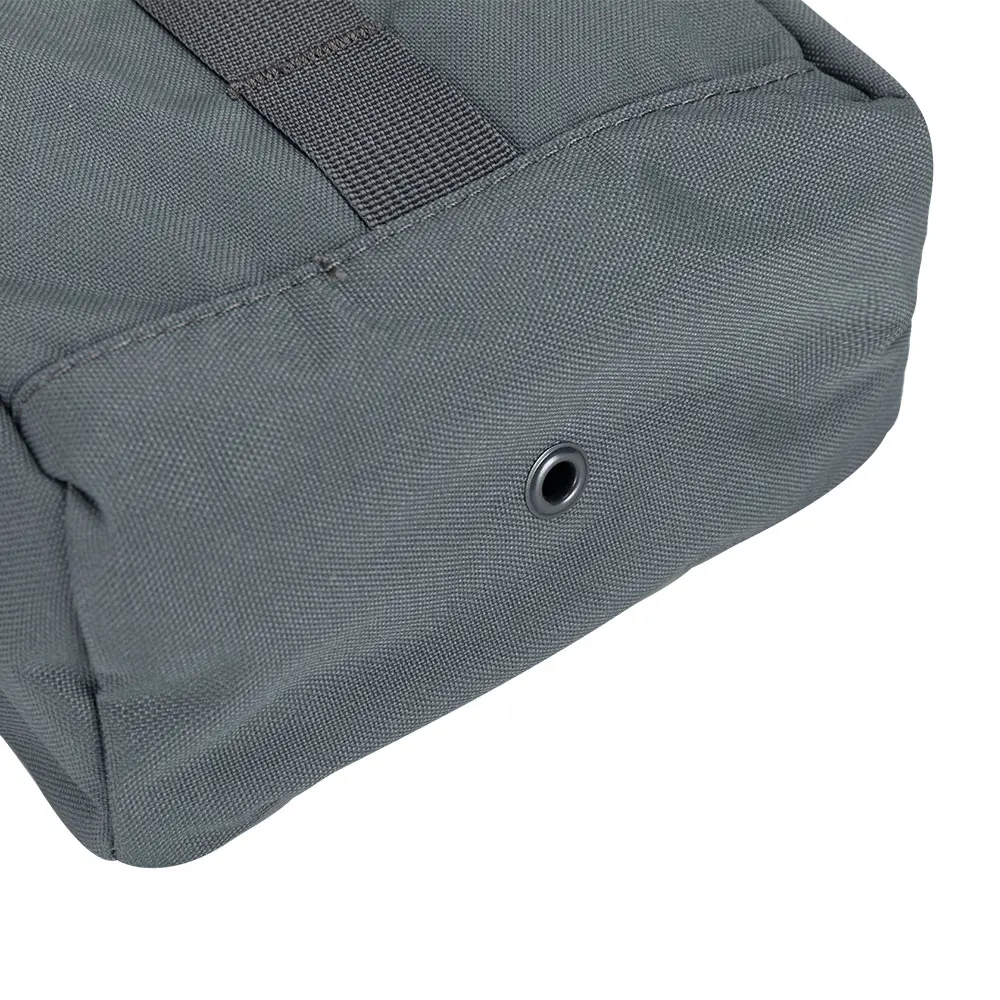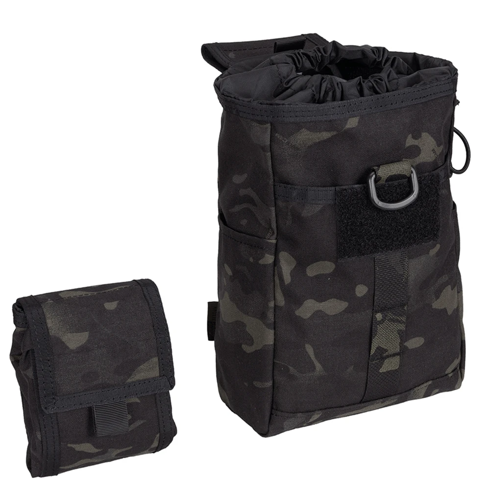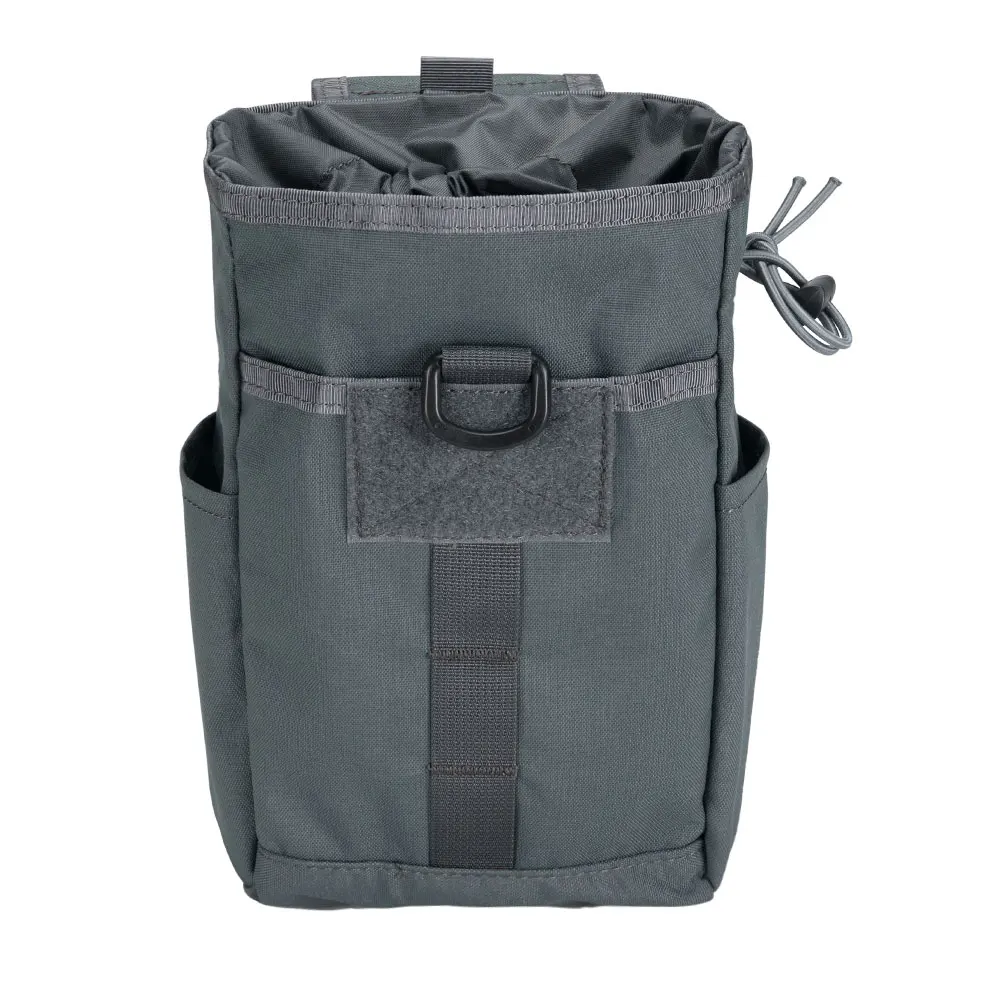 Un bolsillo de bolsa de volcado de utilidad molle superior abierto con cordón principal ajustable y un bolsillo de pegatina mágica frontal. La bolsa de descarga se despliega en una bolsa grande, capaz de contener 6 cargadores redondos AR o AK 30, también se puede utilizar para llevar otras revistas y otros artículos con dos bolsillos en dos lados para sostener una linterna u otros artículos pequeños.