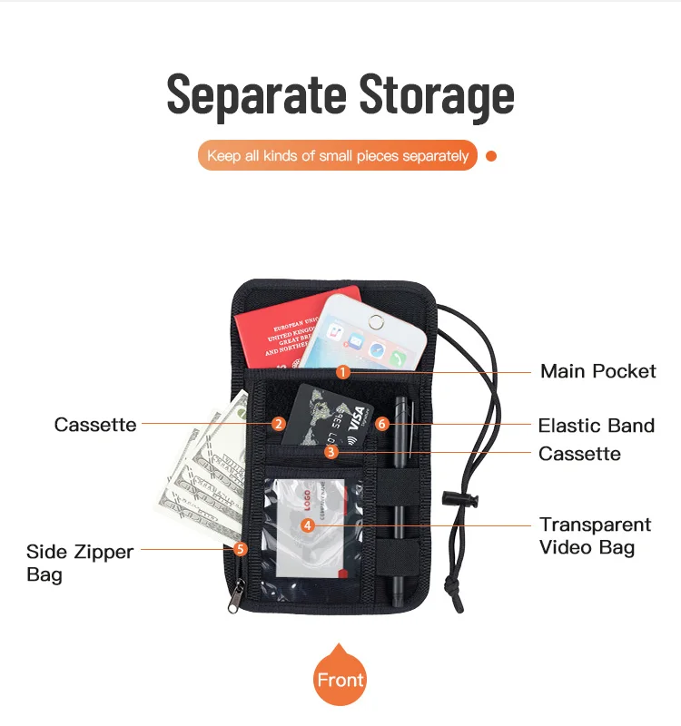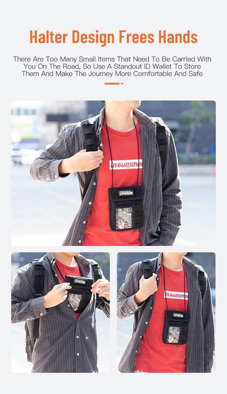Excelente ELITE SPANKER táctico antirrobo pasaporte oculto cartera bolsa para documentos cordón para el cuello almacenamiento de tarjetas de crédito multifunción