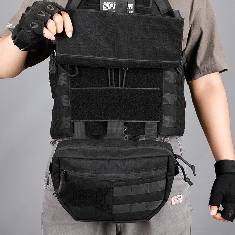 Panel de cinta mágica, con panel de cinta mágica, se puede utilizar con otros equipos de cinta mágica, y el panel de cinta mágica se puede ocultar, si no necesita utilizar el panel de cinta mágica, puedes ponerlo en el bolsillo trasero.