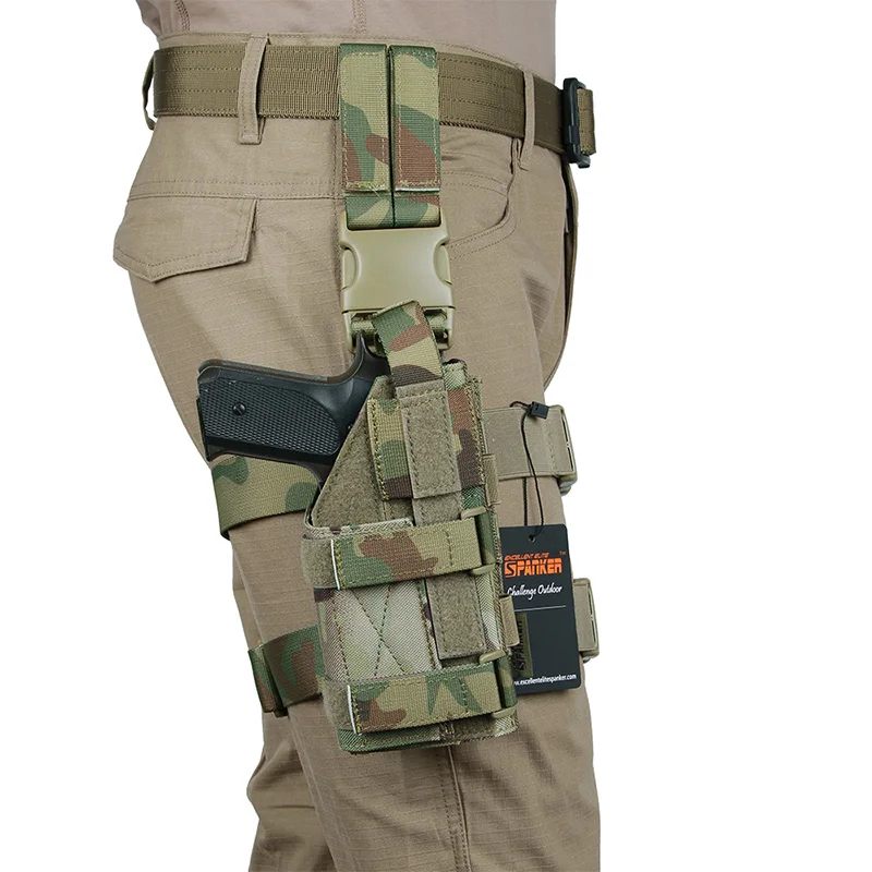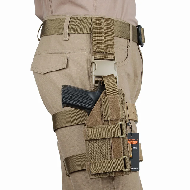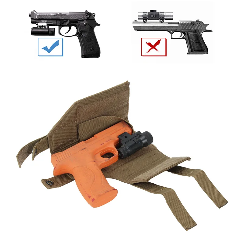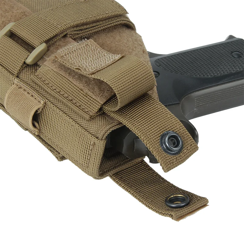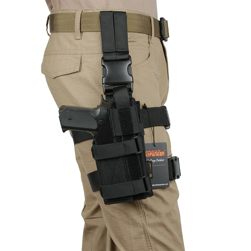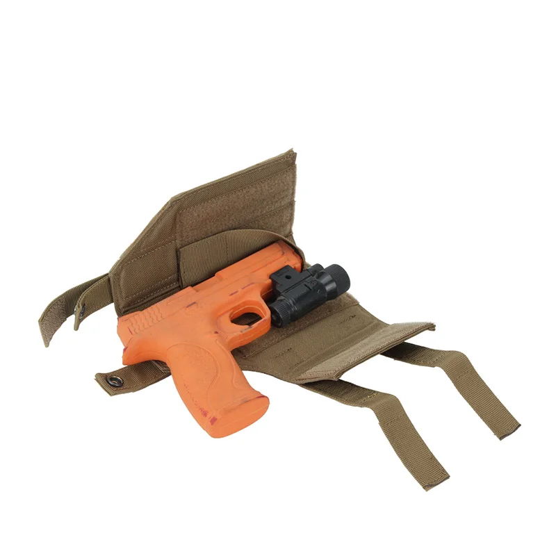 Está hecho de material de nailon cordura 500D de alta calidad y cierres UTX. La suspensión táctica molle a prueba de caídas se utiliza para conectar otras fundas de pistola útiles, bolsas de revistas, bolsas de primeros auxilios, bolsas de linterna, bolsas de tetera, bolsas de basura o cualquier otro artículo en el panel para ampliar el espacio de almacenamiento.
