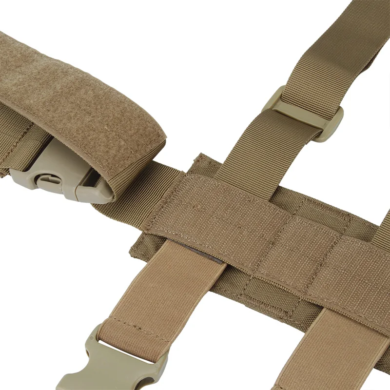 Distribuya el equipo necesario a la mayoría de las partes del cuerpo para facilitar el transporte. Excelente flexibilidad y seguridad en cualquier situación táctica.