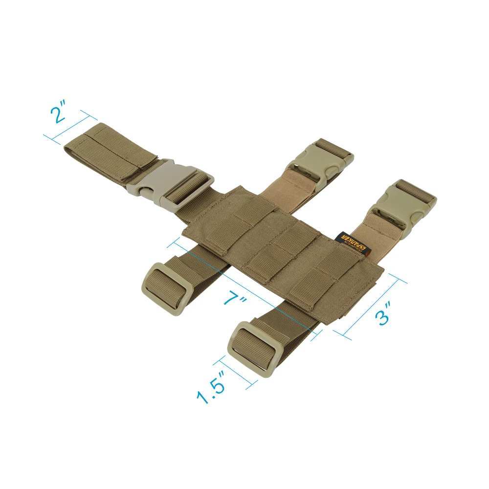Cinta molle totalmente ajustable con dos correas de nailon y correas elásticas para los muslos, fijación de hebilla de liberación rápida y tres filas de cinta molle para bolsos, fijación de funda u otros engranajes compatibles con Molle.