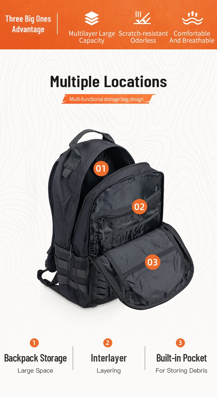 Mochila decente. La base es blanda, pero siempre le pongo espuma o EVA en la parte inferior. Solo una mochila, pero era una mochila fotográfica con una base relativamente dura, así que está bien. La tela es efectivamente Cordura. Los separadores internos están hechos de una tela muy densa. Tiene muchos bolsillos, muy prácticos. El tamaño de la mochila es similar al de una mochila táctica estándar. Hasta ahora, nada de qué quejarme, perfecta.