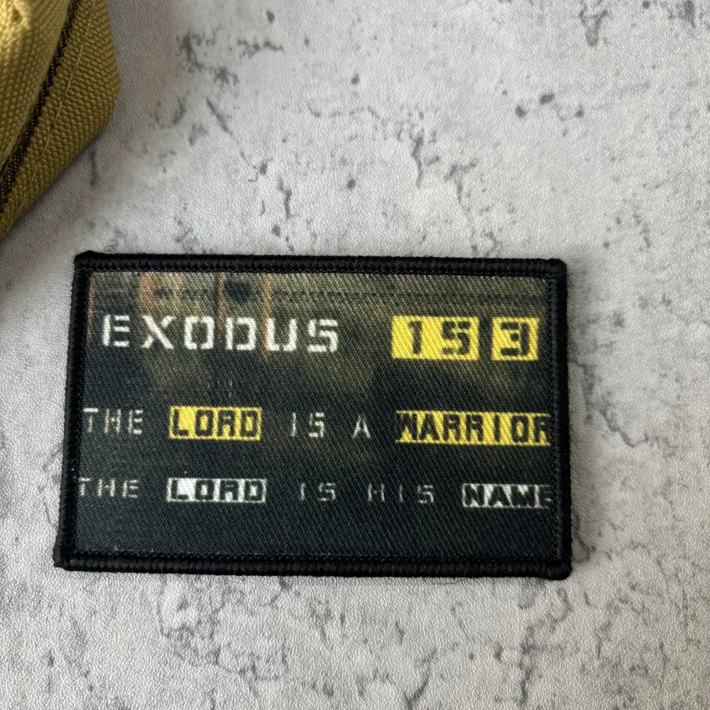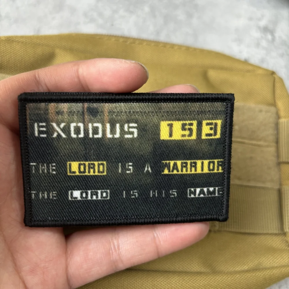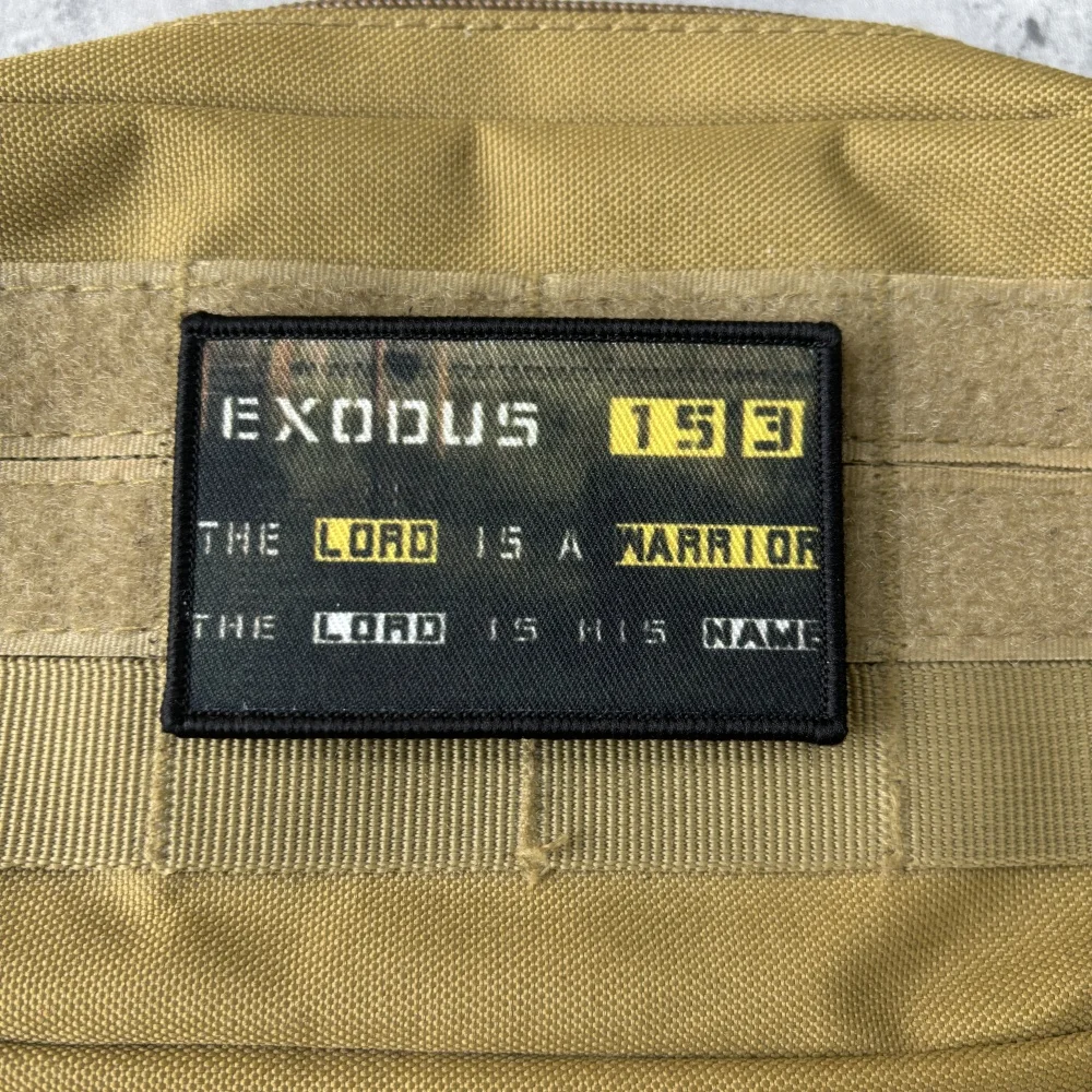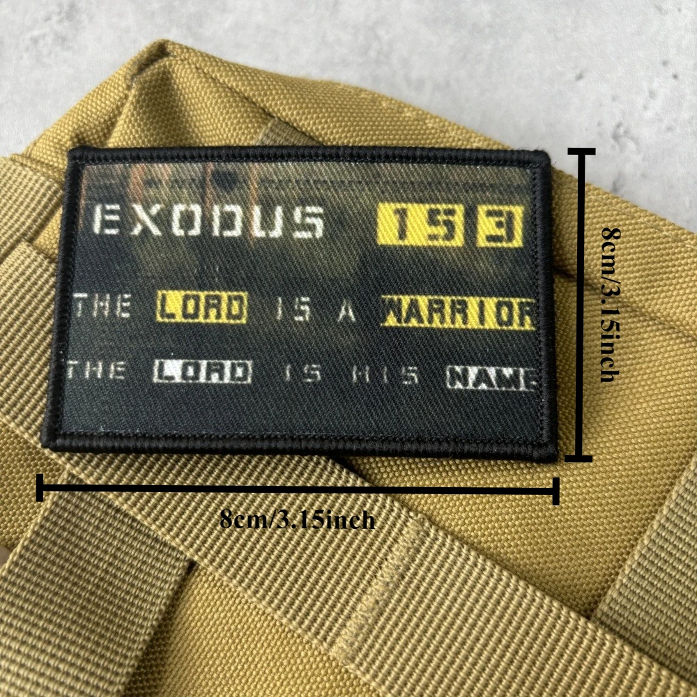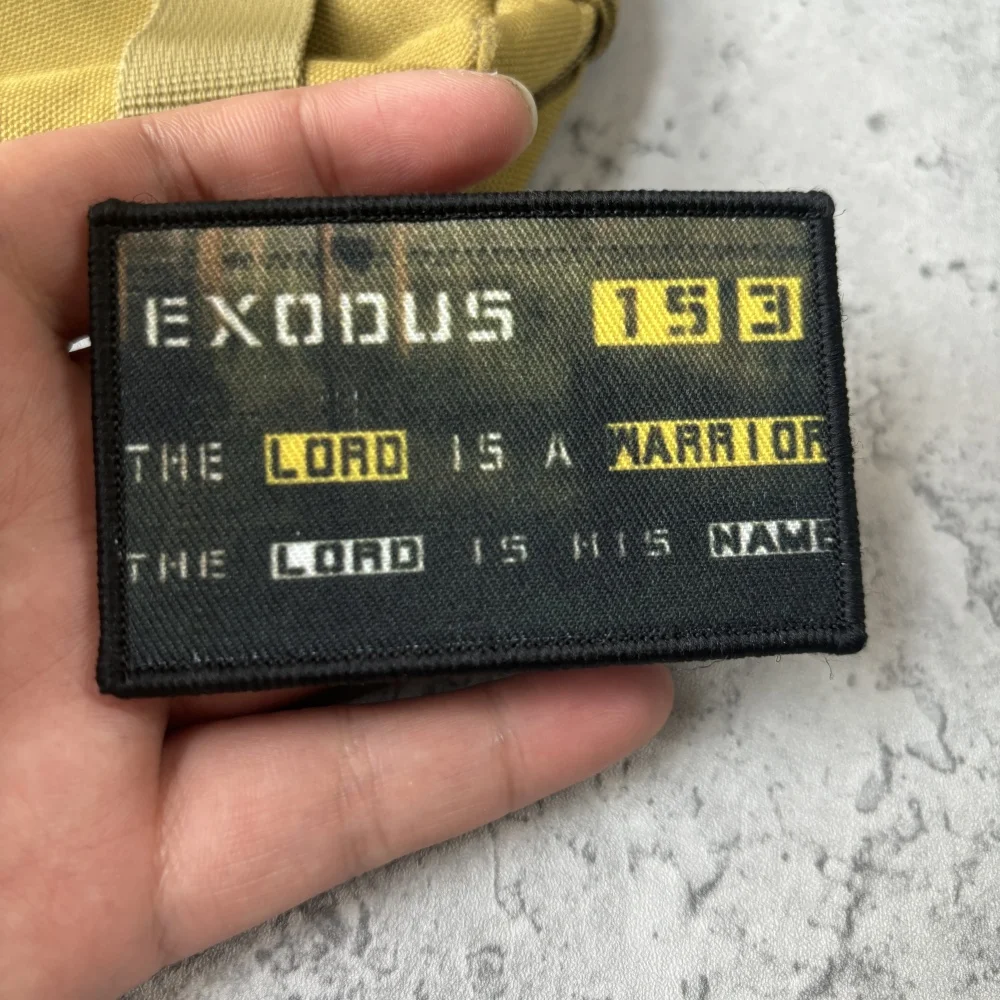 Exodus 15:3 parches tácticos de moral impresos parche de gancho y bucle insignia del ejército militar brazalete ropa mochila pegatinas